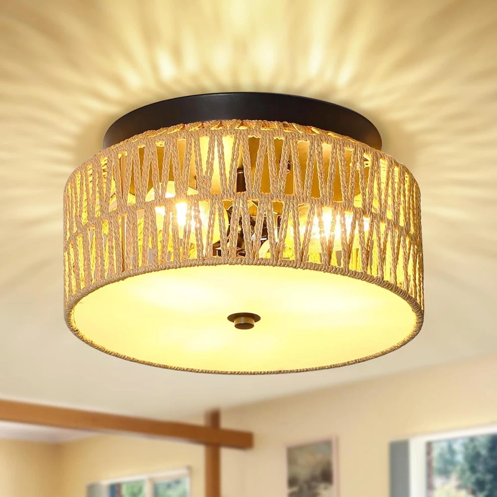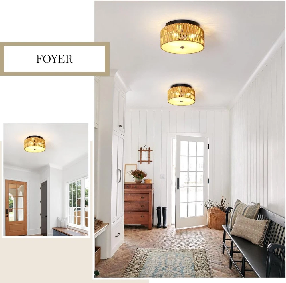 Store New Arrivals Add to Favorite View Feedback Contact Rattan Ceiling Light, 3-Lights Hand Woven Ceiling Light Fixture, Boho Flush Mount Ceiling Light with PVC Plate for Bedroom Hallway Entryway Foyer Living Room Kitchen Laundry Description Item model number RAN-4 Light Source Type LED, CFL, Incandescent Style Farmhouse Number of Items 1 Power Source Corded Electric Number of Light Sources 3 Control Method App Warranty Type Limited Theme Farmhouse Lighting Method Downlight Finish Types Lacquered Controller Type Push Button Unit Count 1.0 Count Room Type Kids Room, Laundry Room, Kitchen, Bedroom, Game Room Switch Type Push Button Product Dimensions 12.6 x 12.6 x 6.5 inches; 3.59 Pounds Material Rattan Required Assembly No Model Number RAN-4 Installation Type Flush Mount Additional Features Hand Woven Rattan Specific Uses For Product Indoor use only Fixture Type Non Removable Brightness 1800 lumen Material Type Rattan Light Color Yellow Light fixture form Ceiling Bulb Base E26 Item Dimensions L x W x H 12.6"L x 12.6"W x 6.5"H Shade Color Yellow Mounting Type Ceiling Mount Color RAN-4 Wattage 180 watts Indoor Outdoor Usage Indoor Shape Drum Voltage 120 Volts Shade Material Rattan Included Components Mounting Hardware, Shade Style Name Farmhouse Light Fixture Form Ceiling 【Unique Appearance Design】Our rattan light fixture is woven by skilled craftsmen in a pure handmade way, so that every weaving detail is carefully processed to give people a beautiful handicraft feeling. The use of this natural material makes the lamp add a unique charm to your home. 【Boho Light Fixtures Ceiling】Farmhouse light fixture is inspired by the bohemian style, making your home more simple and elegant. Bohemian design is not only artistic, but also blends perfectly with a variety of home décor styles, whether it's modern simplicity or rustic retro. 【Eye Protection】Compared with other brands, our boho light fixture have PVC plate on the bottom. Avoids the problem of overly dazzling lights. Whether you're reading, working, or relaxing, this hand woven ceiling light fixture provides you with comfortable light to better protect your eyes. 【Easy to Install】We have made the installation of this ceiling lights for living room as easy as possible. Each lamp comes with a thorough installation guide, making it easy for even one person to install in under 10 minutes. 【Wide Application】Flush mount ceiling light is professionally designed to create a warm atmosphere for your home space. Suitable for bedrooms, kitchens, living rooms, hallway, entryway and so on. 【Size and Base】Mini rattan ceiling light measuring 12.6" in diameter and 6.5" high. This wicker light fixture use 3 max 60W E26 bulbs, compatible with LED, CFL, and incandescent bulbs (not included). 【100% Customer Service】Boho ceiling light provides a full one-year . If there are any problems, please . We will reply within 24 hours to help you solve all after-sales problems. Product Description Boho Farmhouse 3-Lights Hand Woven Rattan Ceiling Light Fixture Boho light fixture is not only artistic, but also perfectly integrated with a variety of home decoration styles. Hand Woven Rattan Boho Ceiling Light The woven structure of the rattan ceiling light casts a beautiful pattern that will impress you. Ceiling Light for Entry Rattan Ceiling Light Fixture Rattan ceiling light suitable for entryway and hallway, giving you a warm and comfortable feeling. 1 Flush Mount Ceiling Light 2 Rattan Lighting Fixture High-Quality Hand Woven Rattan Flush Mount Ceiling Light Fixture Our boho ceiling lights are handmade by skilled artisans, giving the rattan light fixture a retro and chic charm, creating a unique artistic atmosphere for your home. High-Quality Materials Black Metal Ceiling Canopy With a thickened black canopy, this rattan ceiling light fits perfectly into the ceiling and is ideal for bedrooms, laundry rooms, hallways and more. Hand Woven Rattan The natural rattan material allows for a soft and diffused light, creating a warm and inviting ambiance in any room. 3x E26 Base This rattan flush mount ceiling light fixture use 3 max 60W E26 bulbs, compatible with LED, CFL, and incandescent bulbs (not included). PVC Shade The PVC lampshade design makes the light softer and gives you a warm and comfortable feeling Installation is a breeze with our rattan flush mount ceiling light. It comes with all the necessary hardware and a clear instruction manual, allowing you to have it up and shining in no time. Say goodbye to complicated installations and hello to a hassle-free experience. Perfect for Your Home This versatile lighting option is ideal for rooms with low ceilings, thanks to its flush mount design. It maximizes space while providing ample illumination for your laundry room, bedroom, or hallway. Boho ceiling lights can bring a more rustic and elegant atmosphere to your home environment. Whether placed in the bedroom or bathroom, it can add a unique artistic sense to the space. ABOUT US We offer the best prices around on high quality products. Our E-store includes media such as books, movies, music and games while offering electronics, toys, sporting apparel, clothing, tools, general home, garden items and more. SHIPPING We are always working hard to ensure your package arrives as soon as possible. Please understand that some factors like weather, high postal traffic, and the performance of shipping companies are outside of our control. We offer free shipping to the lower 48 states and ship within 2 business days of payment, usually sooner. We do not accept P.O. Boxes. Please provide a physical address. For shipping outside of the continental USA, we only use eBay's Global Shipping Program.The item is shipped to KY and then sent to the rest of the world. International customers are responsible for all duties and taxes. Continue to check out in order to calculate costs for shipping the item to your country. Messages regarding eBay's Global Shipping