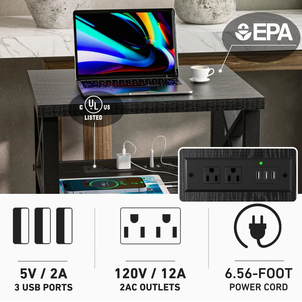Rattan Nightstand with Lock, End Table with Charging Station, Side Table with...