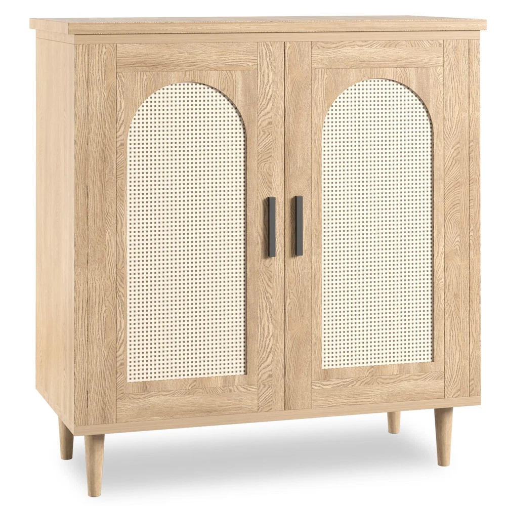 Rattan Storage Buffet Cabinet with 2 Doors and Adjustable Shelves