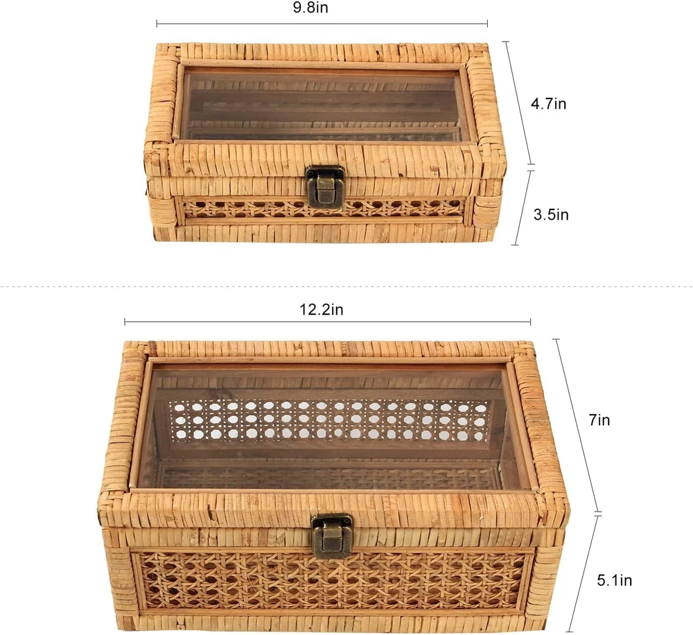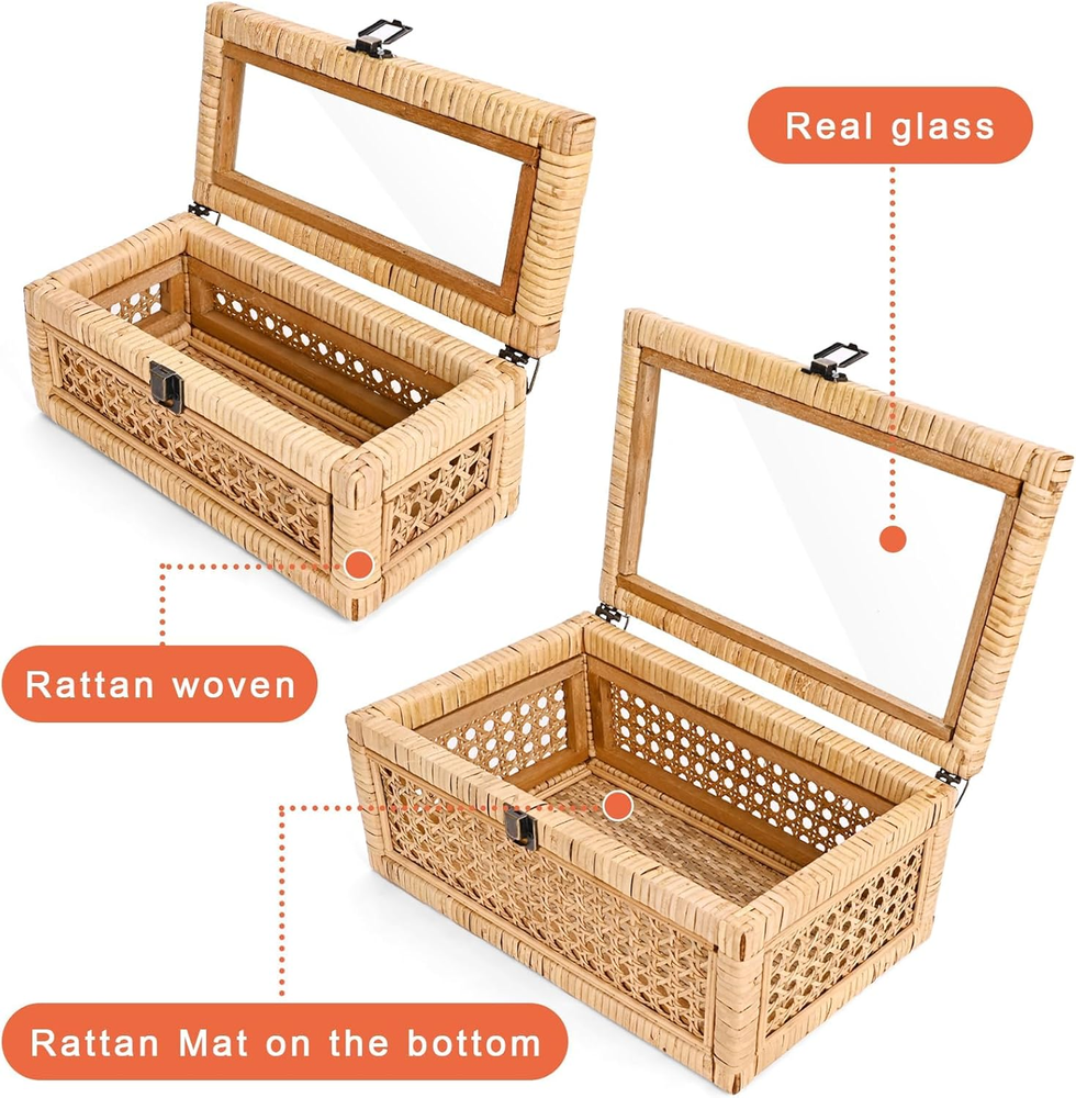 1. Love this rattan display box! The natural wood and woven rattan give it such a charming, boho-chic look, while the clear glass lid keeps items dust-free yet visible. Perfect for showcasing jewelry, keepsakes, or small collectibles—adds a cozy, handmade touch to any space. Sturdy and well-made, it’s both functional and decorative!