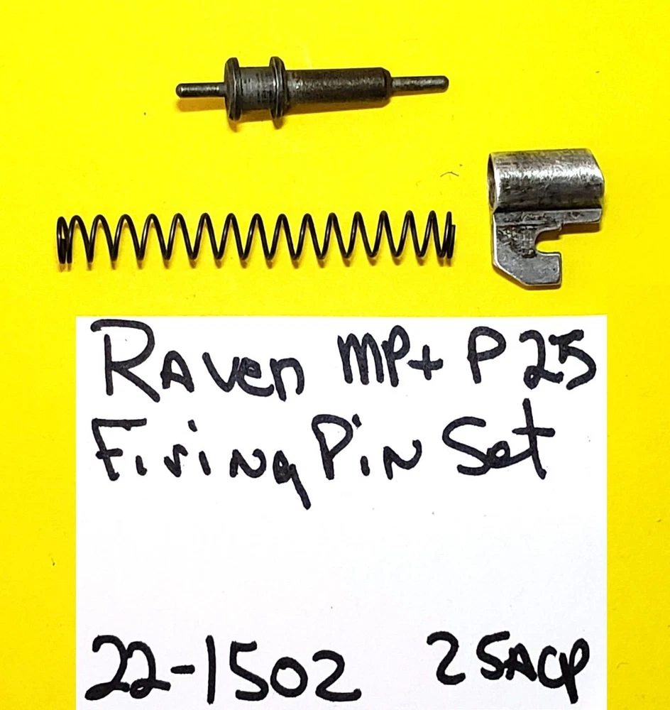 Color:STEELMaterial/Finish:STEEL AND ALUMINUMMPN:Does Not ApplyGauge/Caliber:25 ACPSpecific Part:FIRING PIN, FIRING PIN SPRING AND, RETAINERModel:P 25 MP 25Features:FACTORYType:FIRING PIN SETSeller Notes:“Raven Arms Model MP25 FACTORY FIRING PIN FIRING PIN SPRING AND RETAINER 22-1502A”UPC:Does not applyFor Gun Type:HandgunFor Gun Model:MP 25 P 25Country/Region of Manufacture:United StatesBrand:Raven Armsgtin13:Does not applyVintage:YesFor Gun Make:Raven ArmsMaterial:Aluminum, Steel