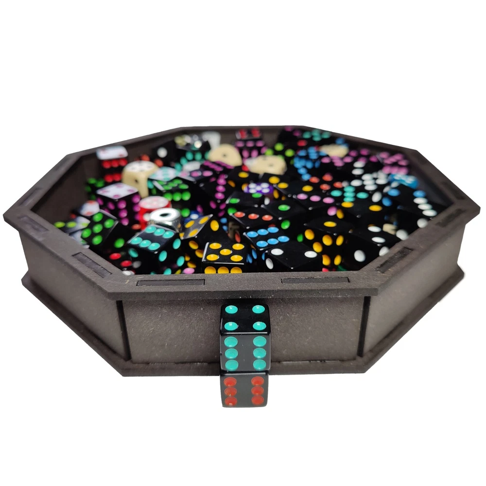 This Dice Tray is the perfect gift for fans of Tabletop Gaming, Board Games, Wargames and DnD. If it’s a square wooden dice tray, octagon dice tray or neoprene folding dice tray you want, we’ve got a huge range of designs in our store. Made and hand finished from laser cut black MDF with printed neoprene inlay for a statement tray with an even rolling surface, with a large surface area thanks to the octagon shape. Prevents lost dice, crawling around on the floor for that elusive D20, chasing the dog for a die they've picked up, arguing over a strategically placed corner die wedged in the carpet etc... 🎲Dice Tray Information🎲 ◾External Size - 25.5cm x 25.5cm x 3.7cm ◾Internal Size - 18.5cm x 18.5cm x 3.2cm ◾Inlay on printed neoprene ◾This wooden framed dice tray is made from black MDF ◾Dice NOT included 🏠Our Processes🏠 ◾Our dice trays use rubber backed neoprene for their bases/liners to reduce noise and give an even roll ◾Printed by us in house using vegan friendly sublimation inks ◾We cut and make our own dice tray frames on our laser ◾Shipped as fully assembled and ready to roll! Every dice tray gets a test roll prior to packing to make sure you get the best rolling tray surface possible for your dice! 📫SHIPPING📫 We offer safe and secure worldwide shipping, and can combine shipping at only 50p per additional item (highest base rate applies). Please note all our items are made to order in the UK and dispatched within the stated time frame. Not quite what you're looking for? Please check out my other items here- https://www.ebay.co.uk/sch/finch_rock_123/m.html