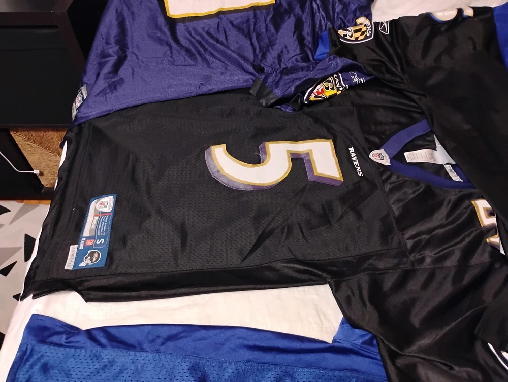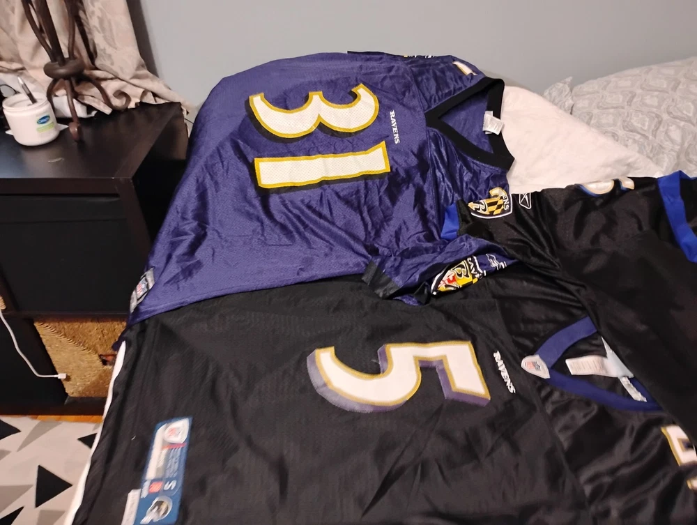 Show off your love for the National Football League (NFL) with this Raven Jersey Lot. Perfect for football fans, this jersey is made from high-quality materials to ensure durability and comfort. Whether you're watching the game at home or at the stadium, this jersey is sure to make you stand out. The jersey features the iconic Raven logo and comes in a striking black and yellow color combination. It's perfect for any fan of the NFL and the Baltimore Ravens. Don't miss out on this opportunity to show your support for your favorite team. Get your hands on this Raven Jersey Lot today!