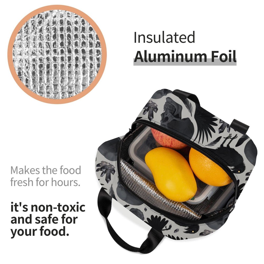 Recommended Age - Over 3 years old Feature: The lunch bag is made of high-density oxford fabric and thick aluminum foil. The lunch bag can keep your food fresh, hot or cold depending on your needs. The pattern on the lunch bag is cute and fashionable, interesting and cool. The insulated soft cooler lunch bag zipper completely closes, keeping the contents cool for several hours. This lunch bag is stylish and cute, compact and practical. Large capacity design, can hold lunch box, drinks, sandwiches, salads, snacks, fruits, etc. It can meet all your lunch needs. You can take it to the office, travel, party or pack healthy snacks for your family, or enjoy a pleasant sunday picnic. The upgraded version of the durable and smooth zipper makes opening or closing the lunch bag extremely smooth, effectively reducing the burden on you and your little friend. The thickened version of the hand strap makes the connection to the lunch bag very strong and not easy to break. Washing instructions: 1. Cloth shell: wipe with a damp cloth. 2. Aluminum foil lining: Please wipe with a damp cloth dipped in detergent (if necessary), then rinse with water, and finally dry with a dry cloth and air dry. 3. Do not machine wash, do not expose to the sun, do not wring out. It is also a great gift idea for birthday, xmas, new year or other festivals gift. Quality Materials : Durable oxford fabric and bpa-free food-thickened aluminum foil to keep your food warm or cold for hours, waterproof and stain-resistant oxford fabric on the outside for reusability, and easy to clean. The cute lunch bag has sturdy handles that are attached by tight stitching, making the lunchbag extremely durable, stylish and secure. Perfect Size & Front Pocket : 8.5x5x8 Inches (L*W*H), appropriate capacity design, so that you have enough space for lunch, sandwiches, salads, fruits, snacks, drinks, etc. A front pocket holds keys, cards, , ipad or other small items you need every day. Upgraded Design : Thickened handle and upgraded wear-resistant smooth zipper. The wide zipper opening design is easy to access, which can prevent liquid from seeping out of the container and soiling the inside of the bag, ensure your comfortable carry. Multi Function : As a lunch bag, picnic bag, travel snack bag or shopping bag. The unisex lunch bag is not only suitable for work, but also for outdoor activities such as fishing, hiking, picnics and travel. You can take it to the office, on a day trip, to the beach, and to the sports field. Or pack a healthy snack for your family or enjoy a fun sunday cookout. Washing Instructions : Hand Wash. Wipe clean the inner lining easily with a damp cloth, do not bleach.