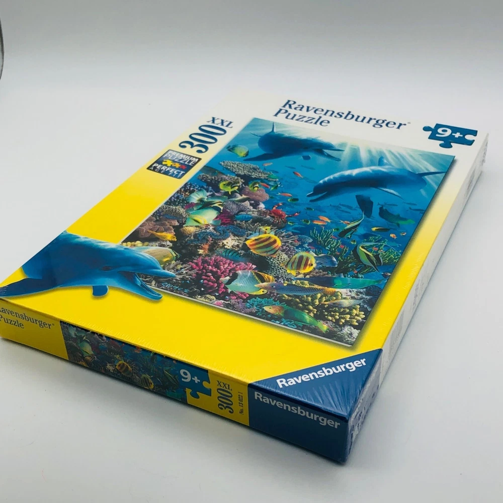 An engaging 300 piece puzzle featuring an ocean scene with dolphins. Suitable for ages 9 and up, offering both entertainment and educational value. • 300 XXL pieces • Ocean with dolphins theme • Recommended age: 9+ • Premium puzzle quality • Finished size: 19" x 14"