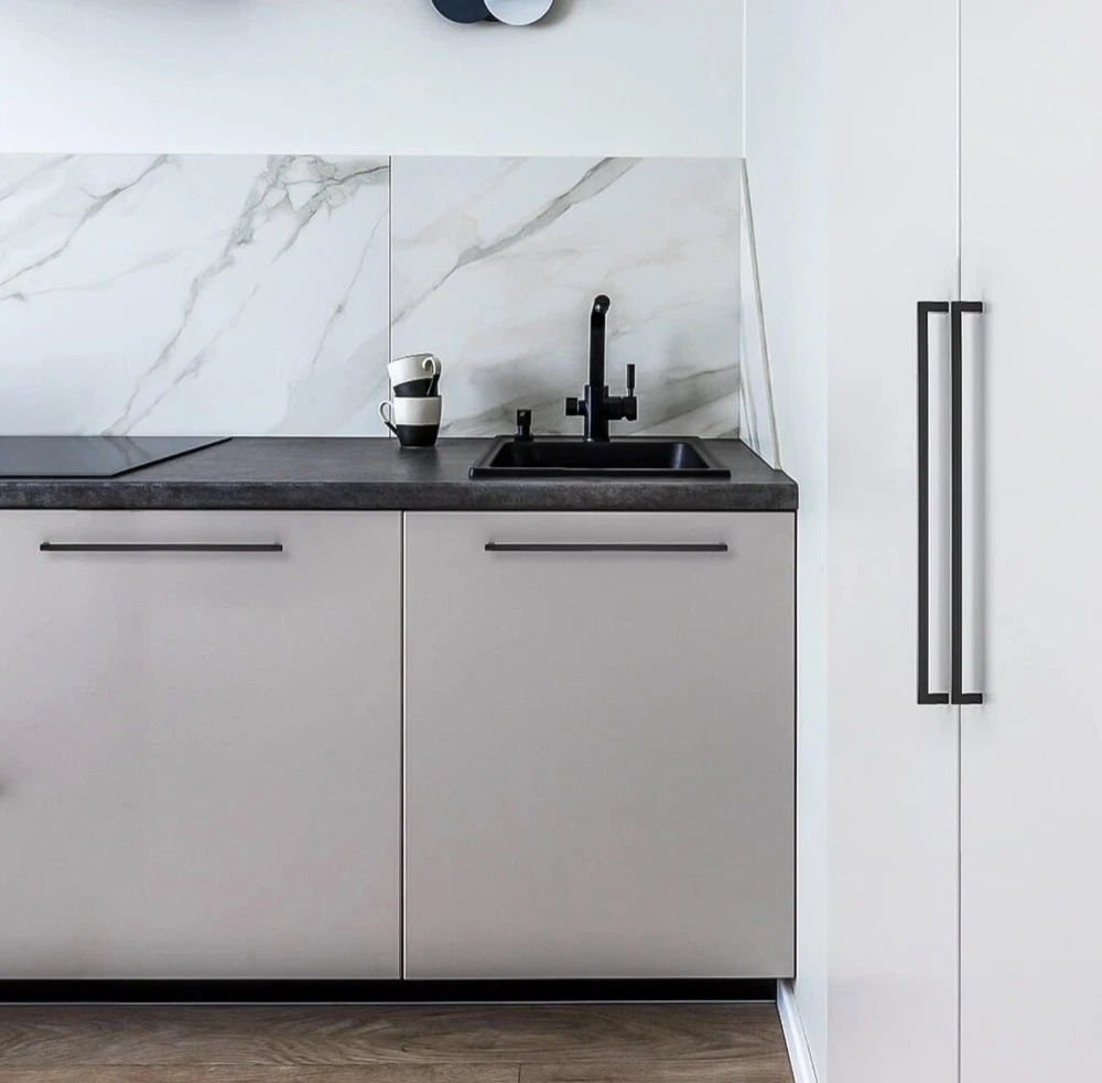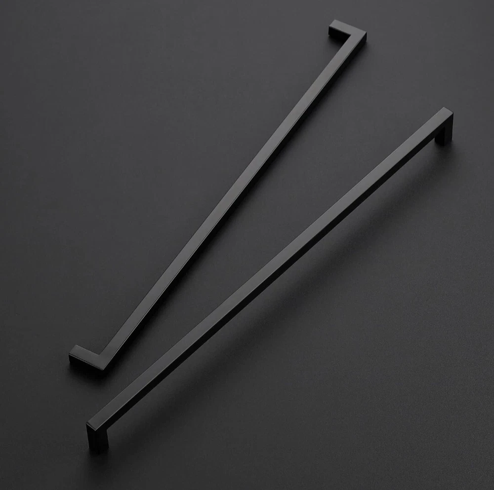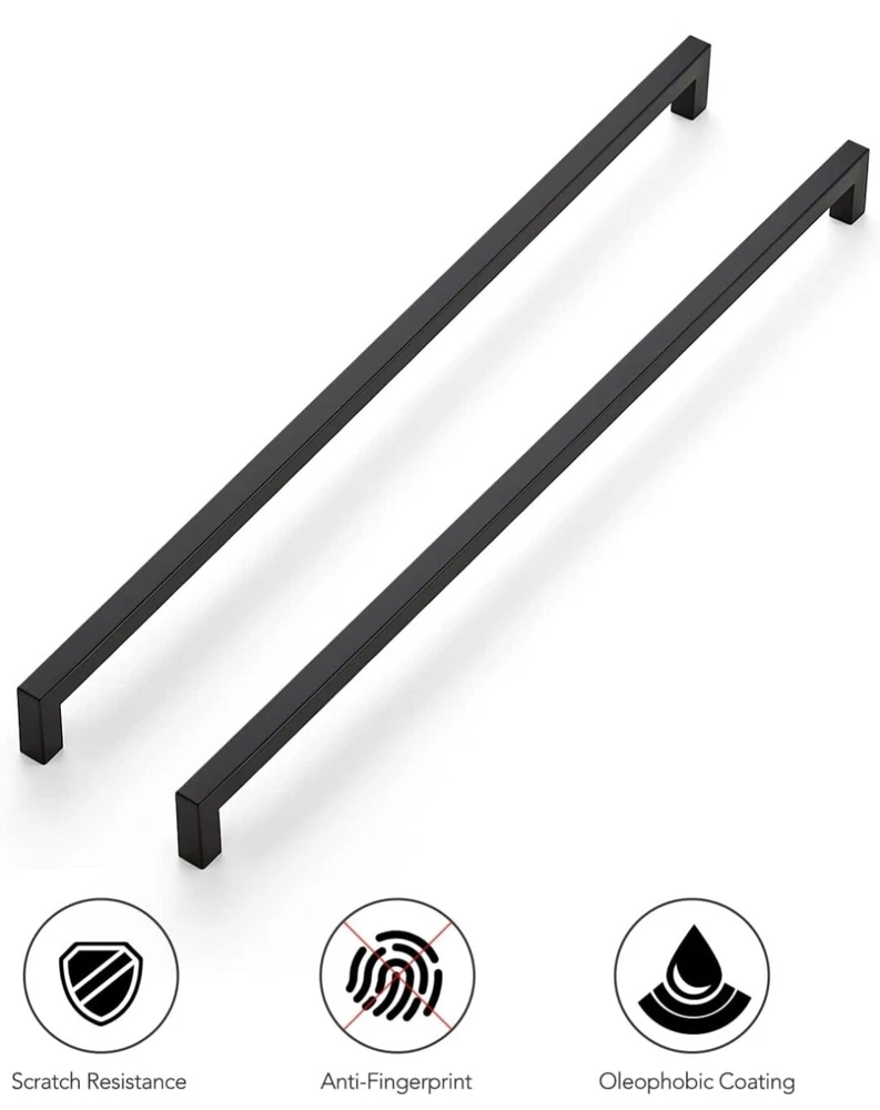 If you're replacing your handle, measure and ensure the center to center hole spacing of the current handle is 18 inches(458mm) Installing new cabinet handles, drill two holes with center to center spacing of 18 inches(458mm) Enduring & STRONG: 10 bar pulls made of stainless steel finished with classic matte black coordinates well with other appliances and accessoriess Simple look: The black cabinet handles have a wide appeal across a range of kitchen cabinet doors and drawers The matte black handles have a clean and timeless look that works with farmhouse, vintage, traditional and transitional styles [MEASUREMENT] - Overall Length: 18-1/2 inch(470mm); Width: 1/2 inch(12mm); Projection: 1-2/5 inch(35mm); Screw-hole center: 18 inch(458mm)