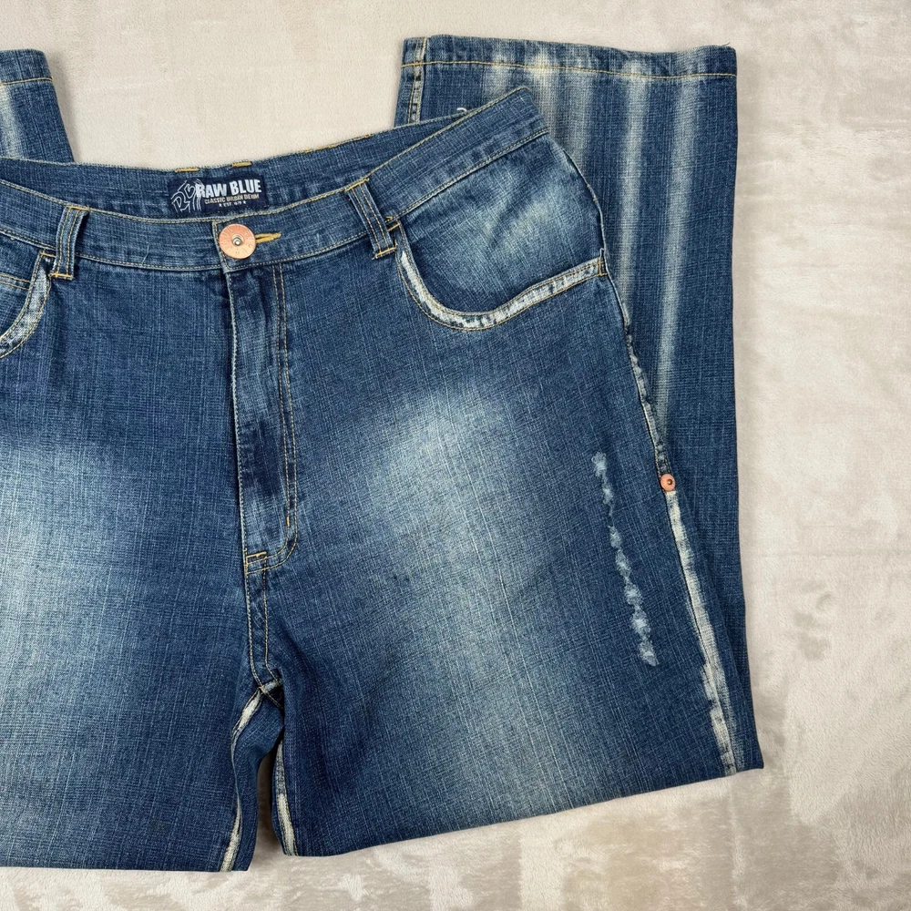 Raw Blue Mens Blue VTG Y2K Denim Jeans Size 42×33 Distressed Please view measurement in pictures as used products may fit different than the size shown on the tag Our Items are all looked over, measured, and stored in a smoke-free environment We do our best to accurately describe and measure all of our items when listing, but if you have any issues we offer a 30 day free return policy for unused and unworn items. Items typically ship the same or the next business day. If you would like to return an item message us first. We will answer any questions you have, and will resolve the issue!