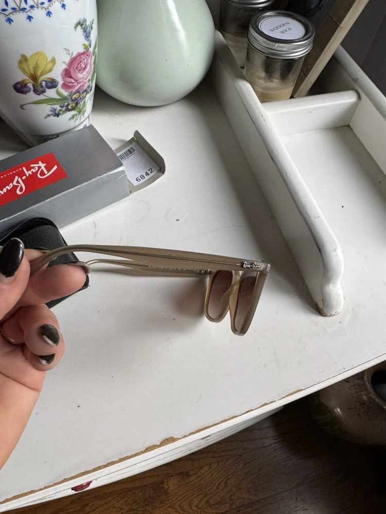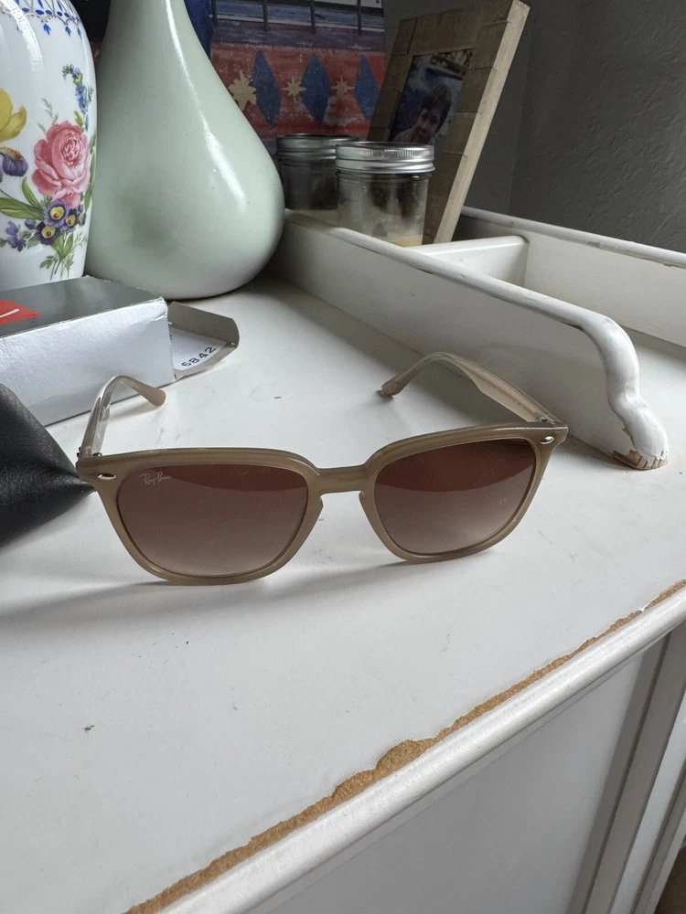 New with Box. Orig MSRP $185. Upgrade your style with these Ray-Ban sunglasses. The light brown frame and brown lenses make for a classic and timeless look that pairs well with any outfit. These sunglasses are perfect for both men and women, and the unisex design ensures a comfortable fit for all. The model number 4362 guarantees the quality and authenticity of the product. Whether you're heading to the beach or a formal event, these sunglasses will keep you looking sharp and protect your eyes from harmful UV rays.