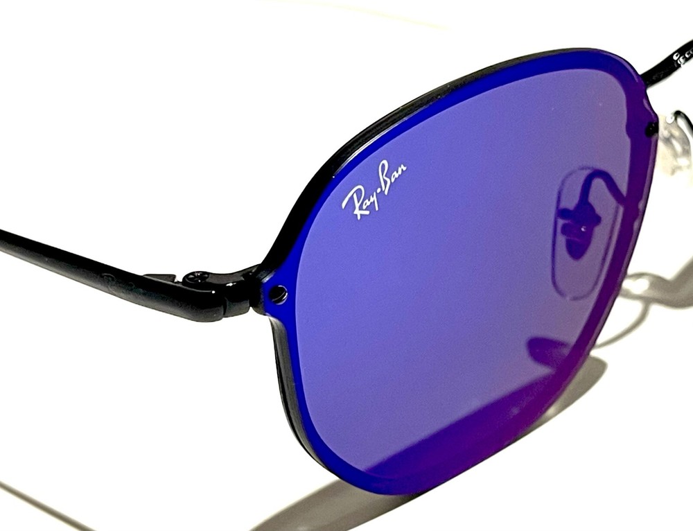 GUARANTEED 100% AUTHENTIC Product Details: Model code: RB3579N 153/7V 58-15 See your favorite pair of shades in a brand new way with the Blaze collection. An upgraded, super modern approach to eyewear, with materials and colors like you’ve never seen before. A trend-setter with bite, the Blaze Collections is a no-compromise fashion statement that gives off ultra-contemporary vibes. The cutting edge metal serves up attitude, and the lens-over-frame style is fiercely current. Mirror and gradient shades let you choose your style. Frame material: Metal Frame color: Black Lenses: Violet Mirror Shape: Round Size lens-bridge: 58 15 Temple Length: 145 Package includes: microfiber cloth, paperwork, Ray-Ban Sunglasses, case and outer box. Shipped with USPS First Class. thank you for shopping with us !!