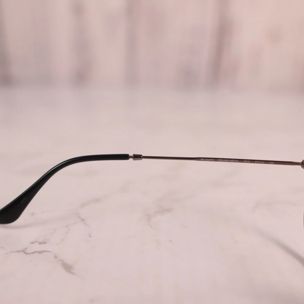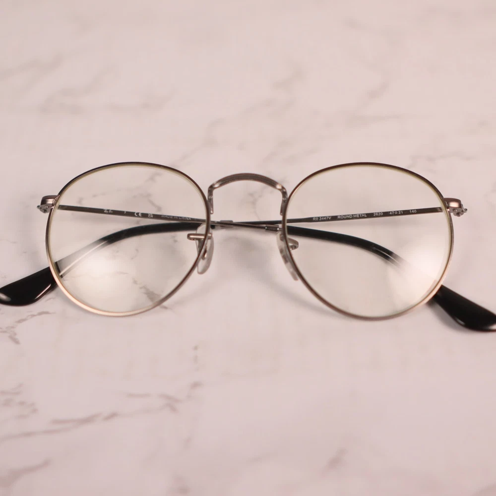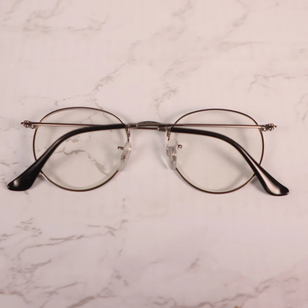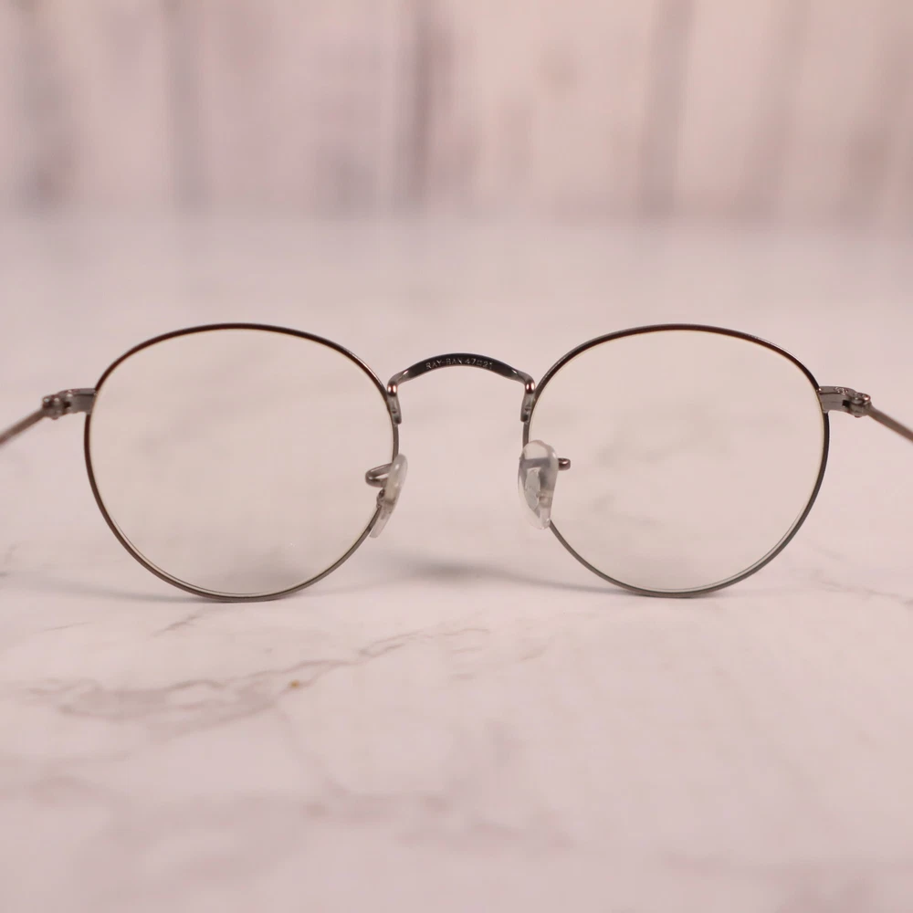 Bridge Width: 21 mm Temple Length: 145 mm Frame Color: Gray Pattern: Solid Lens Socket Width: 50 mm Frame Material: Metal, Plastic Style: Full Rim Features: Full Rim Brand: Ray-Ban Theme: Designer Type: Eyeglasses Seller Notes: “Frame only, the lens are scuffed/scratched and will need replaced” Department: Unisex Adults