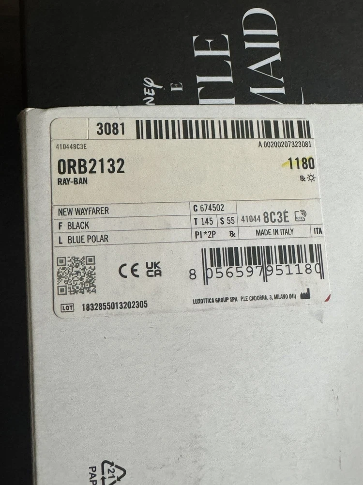 The product is a limited edition collaboration between The Little Mermaid and Ray-Ban. It is a pair of stylish black square sunglasses with polarized blue lenses. The frame is made of plastic, featuring a classic design. These sunglasses are specifically designed for women and would be a fashionable accessory for any outfit. These are from Disneyland Anaheim and are brand new never opened