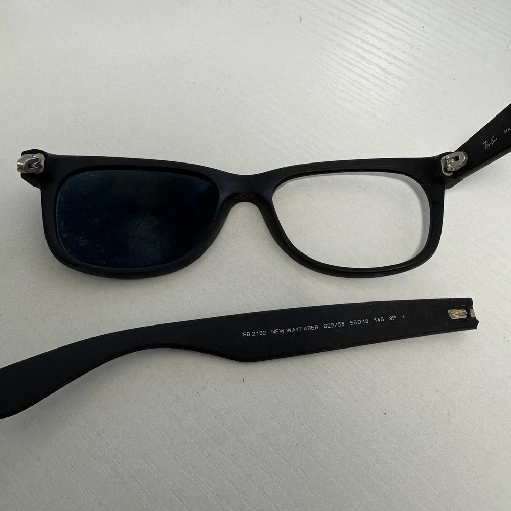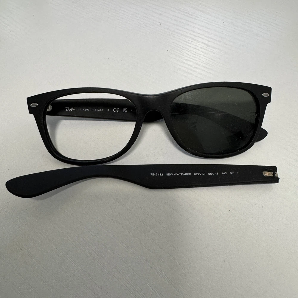 FOR PARTS ONLY Ray Ban New Wayfarer Matte Black RB2132 622/58 55-18 145 3P Broken left arm, cracked right lens, missing left lens Sold as is - no returns, noted as defective and broken