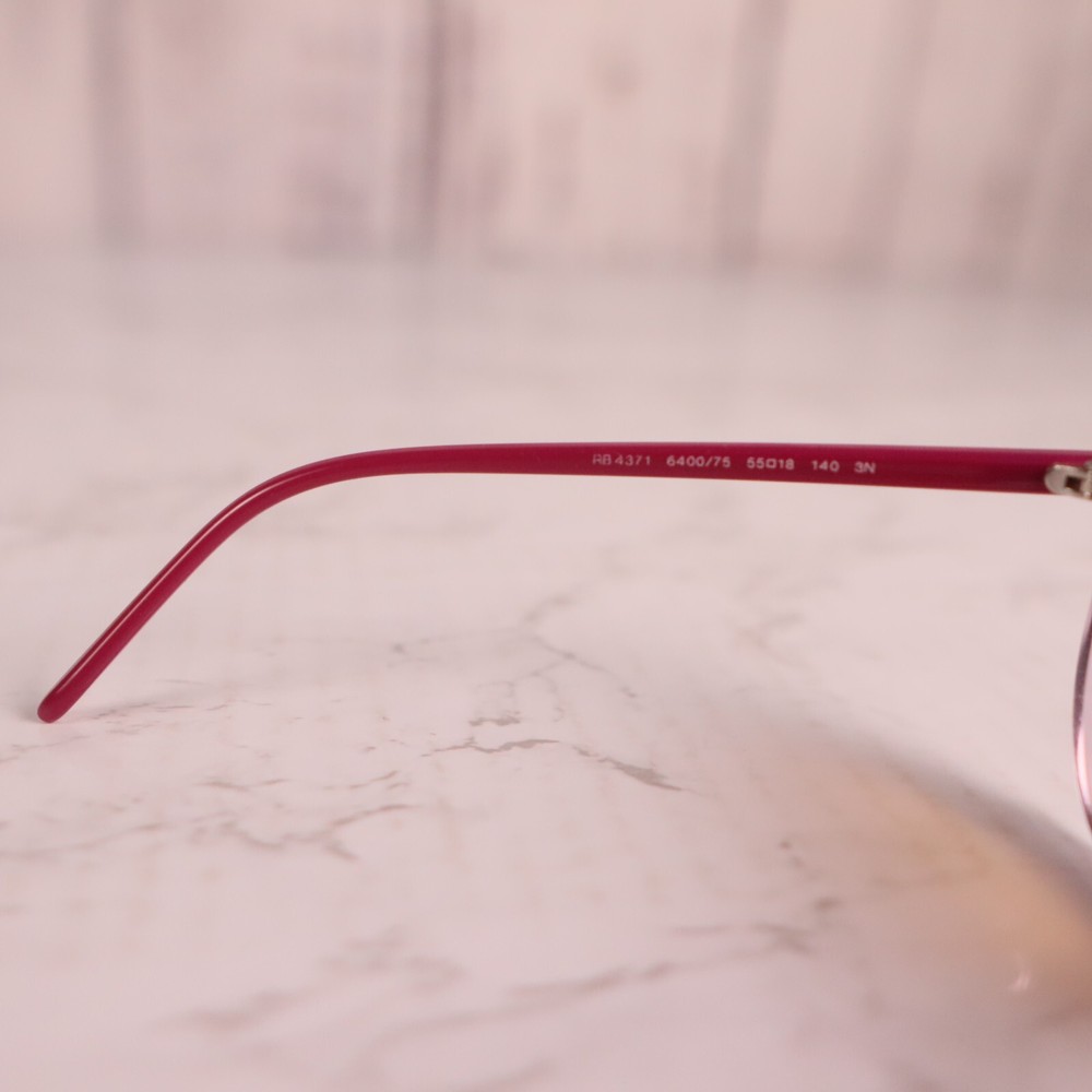 Seller Notes: “Frame only, the lens are scuffed/scratched and will need replaced.” gtin13: 8053672986525 Country/Region of Manufacture: Italy Features: Lightweight, Oversized UV Protection: UVA & UVB MPN: New RB4371 640075 55mm Oversized Personalized: No Lens Color: Purple Lens Technology: Anti-Reflective UPC: 8053672986525 Lens Material: Plastic Frame Color: Pink Department: Unisex Adults Temple Length: 140 mm Brand: Ray-Ban Frame Material: Acetate Vintage: No Style: Round Model: New RB4371 640075 55mm Oversized Type: Sunglasses