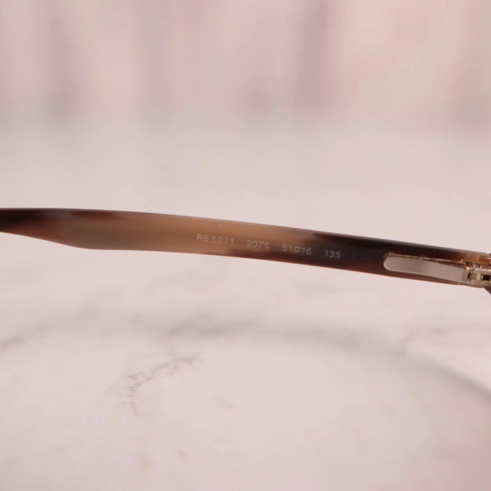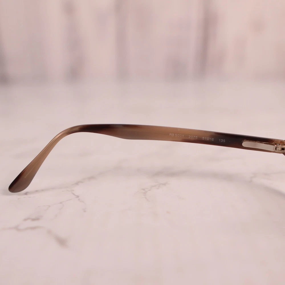 Department: Women Lens Socket Width: 53 mm Brand: Ray-Ban Temple Length: 140 mm Frame Color: Brown Bridge Width: 16 mm gtin13: Does not apply UPC: Does not apply MPN: Does Not Apply Pattern: Striped Features: Full Rim, Rectangular Model: Ray-Ban RB 5031 Style: Full Rim Type: Eyeglasses Seller Notes: “Frame only, the lens are scuffed/scratched and will need replaced”