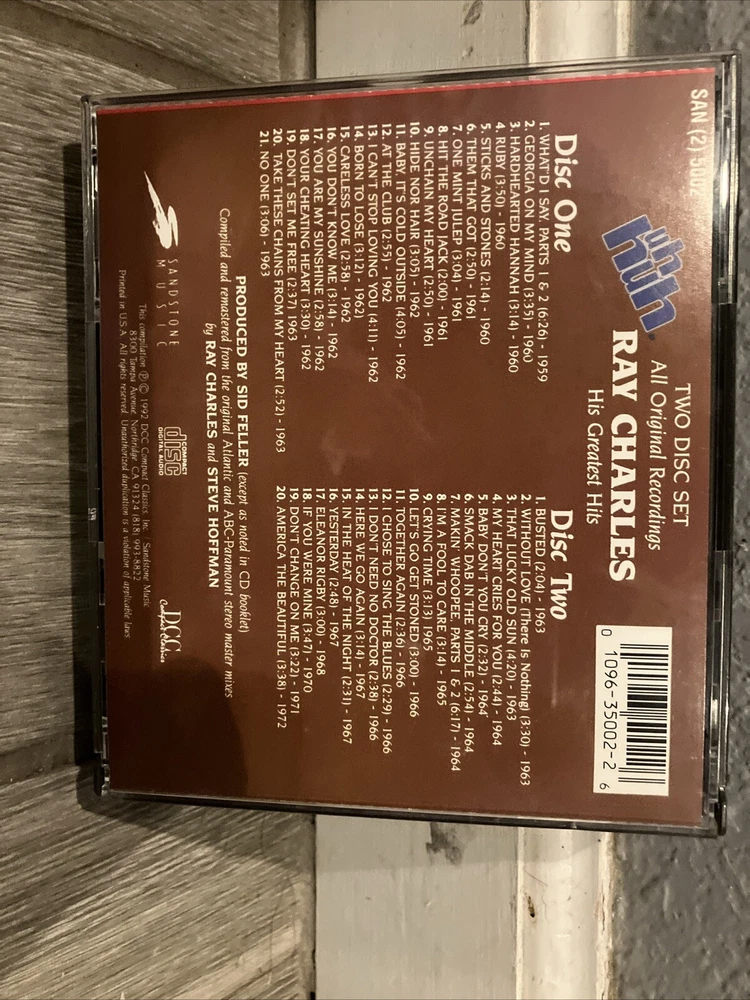 Ray Charles His Greatest Hits Uh Huh 2 CD Sandstone Music SAN (2) 5002 1992 EX