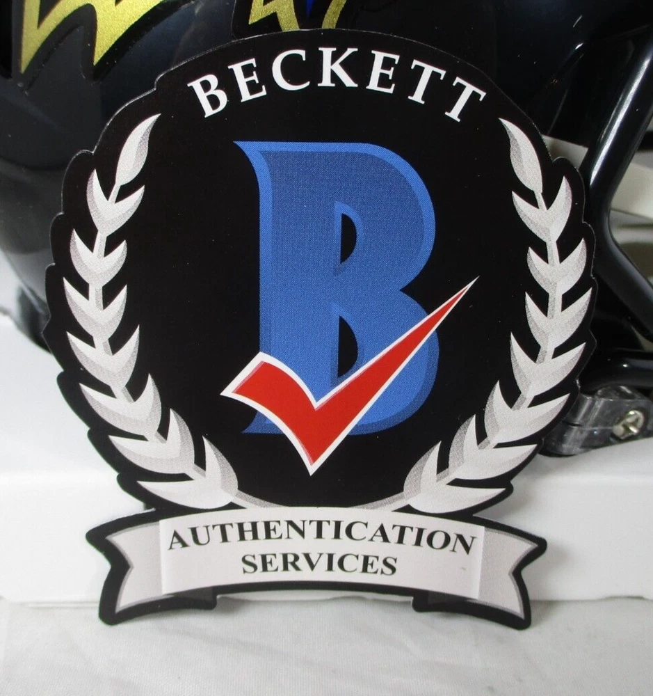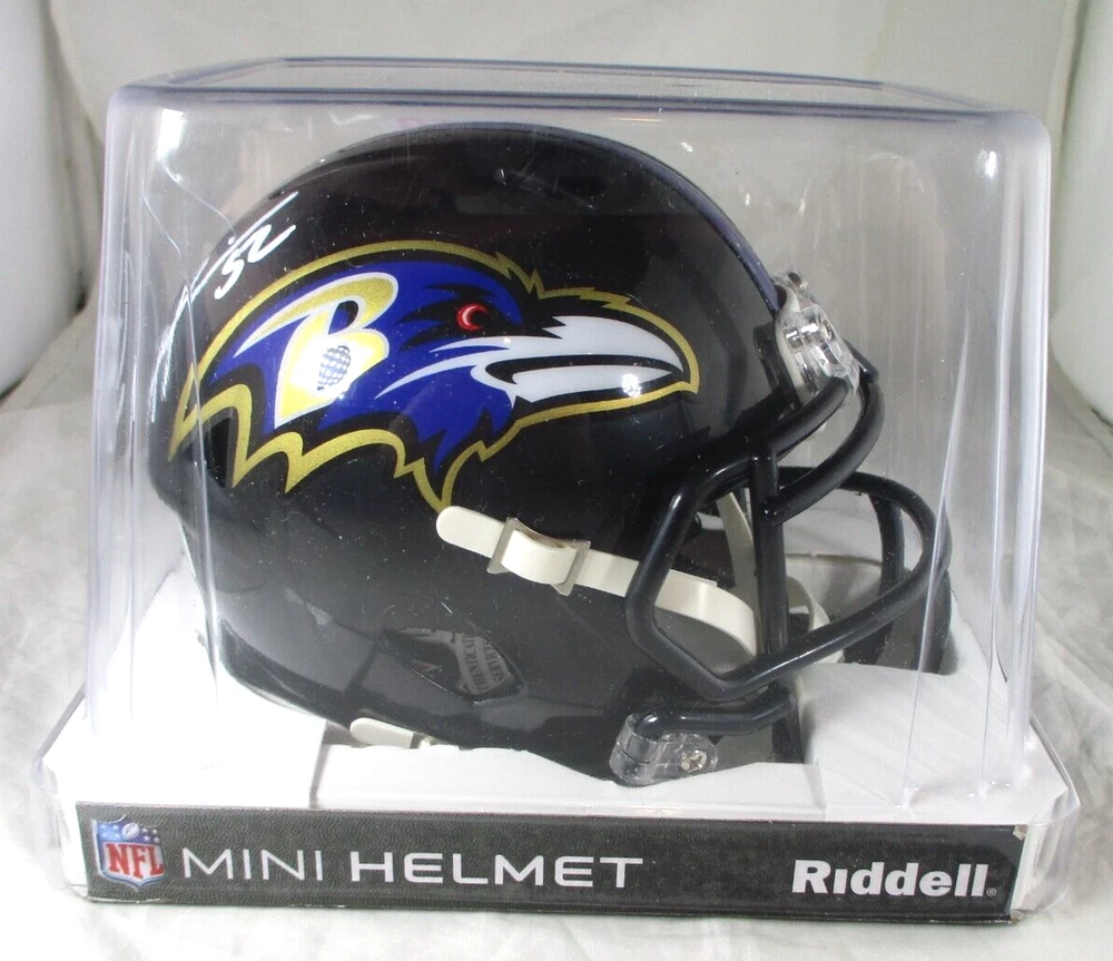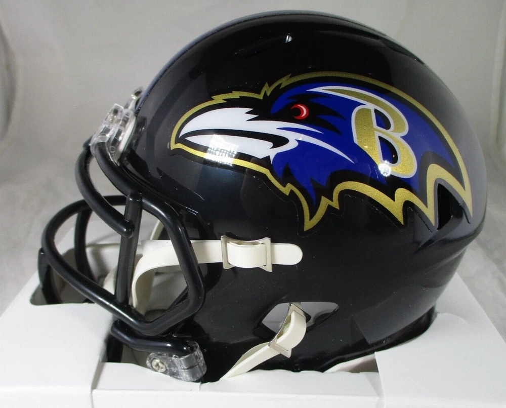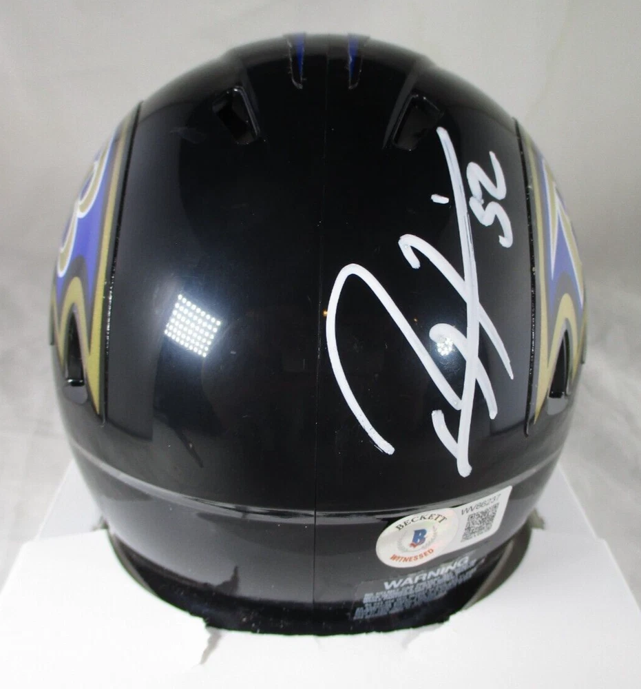 Ray Lewis / Autographed Baltimore Ravens White Lunar Eclipse Mini Helmet / BAS For sale in this listing is a new condition Riddell brand Baltimore Ravens Lunar Ecilpse speed mini football helmet, featuring the Baltimore Ravens logo appearing on both sides of the matte white helmet.The helmet has been autographed by NFL Hall of fame member and former Baltimore Ravens Superstar Linebacker ray Lewis in purple sharpie across the back of the helmet.Next to his signature Lewis has inscribed his player number "52" in purple sharpie. The autograph has been authenticated by Beckett Authentication Services with a witnessed authentication sticker and matching QR code affixed to the helmet as shown in the listing photos. Thank you for your interest in this item. For sale in this listing is a new condition Riddell brand Baltimore Ravens speed mini football helmet, featuring the Baltimore Ravens logo appearing on both sides of the black helmet. The helmet has been autographed by NFL Hall of fame member and former Baltimore Ravens Superstar Linebacker ray Lewis in white paint pen across the back of the helmet. Next to his signature Lewis has inscribed his player number "52" in white paint pen. The autograph has been authenticated by Beckett Authentication Services with a witnessed authentication sticker and matching QR code affixed to the helmet as shown in the listing photos. Thank you for your interest in this item.
