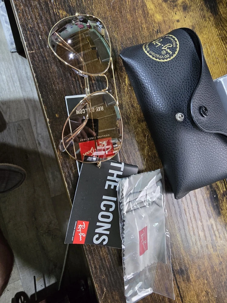 Brand new never worn. Removed from packaging to take pictures and verify condtion. The Ray-Ban Aviator Gold/Pink/Grey sunglasses feature a solid gold metal frame with mirrored pink mirror gradient grey lenses. These unisex aviator sunglasses by Ray-Ban offer 100% UV protection and a stylish reflective finish. The classic aviator style and metal frame make them a timeless accessory for both men and women looking to make a fashion statement.