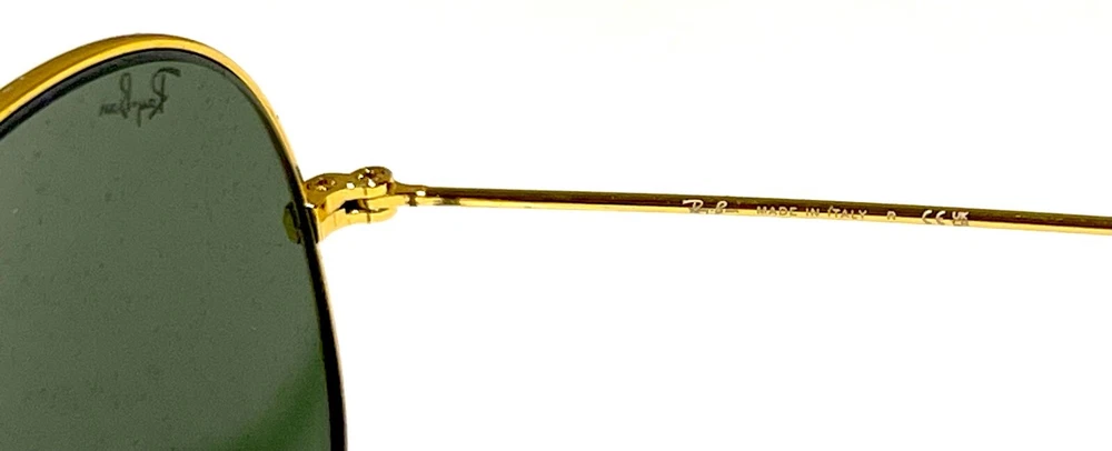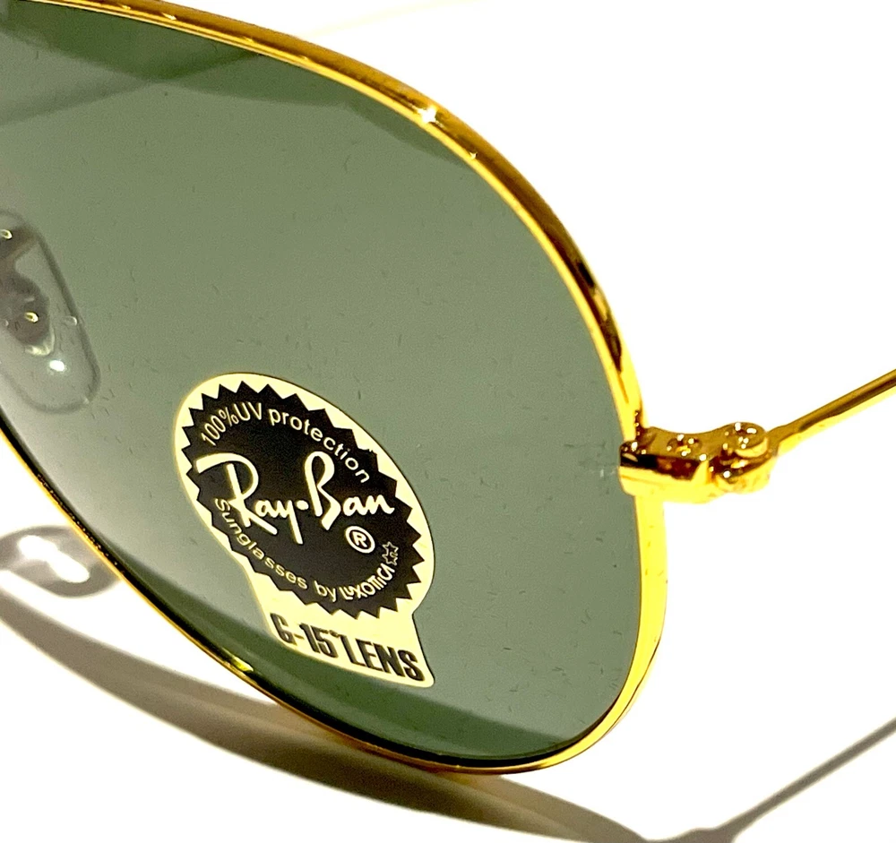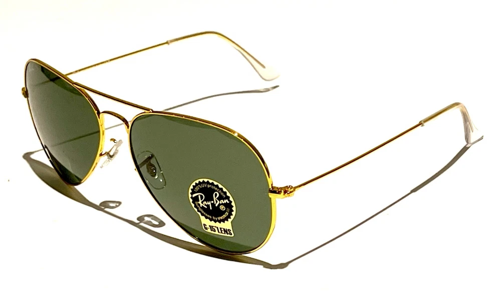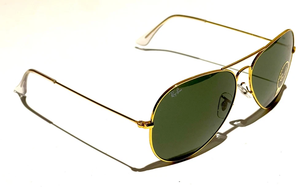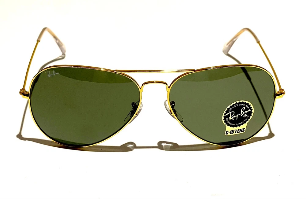 GUARANTEED 100% AUTHENTIC Product Details: Model code: RB3025 001 62-14 Currently one of the most iconic sunglass models in the world, Ray-Ban Aviator Classic were originally designed for U.S. aviators in 1937. Aviator Classic sunglasses are a timeless model that combines great styling with exceptional quality, performance and comfort. With a classic gold frame, you can see the world with optimum visual clarity and 100% UV protection. Frame material: Metal Frame color: Gold Lenses: Classic Green G-15 Shape: Pilot Size lens-bridge: 62 14 Temple Length: 140 Package includes: microfiber cloth, paperwork, Ray-Ban Sunglasses, case and outer box. Shipped with USPS First Class. thank you for shopping with us !!