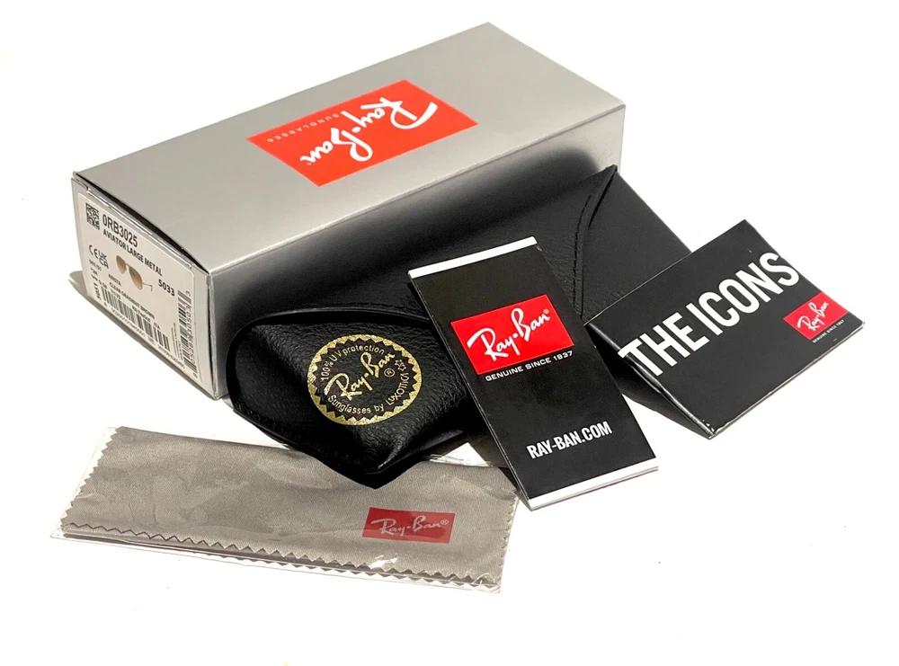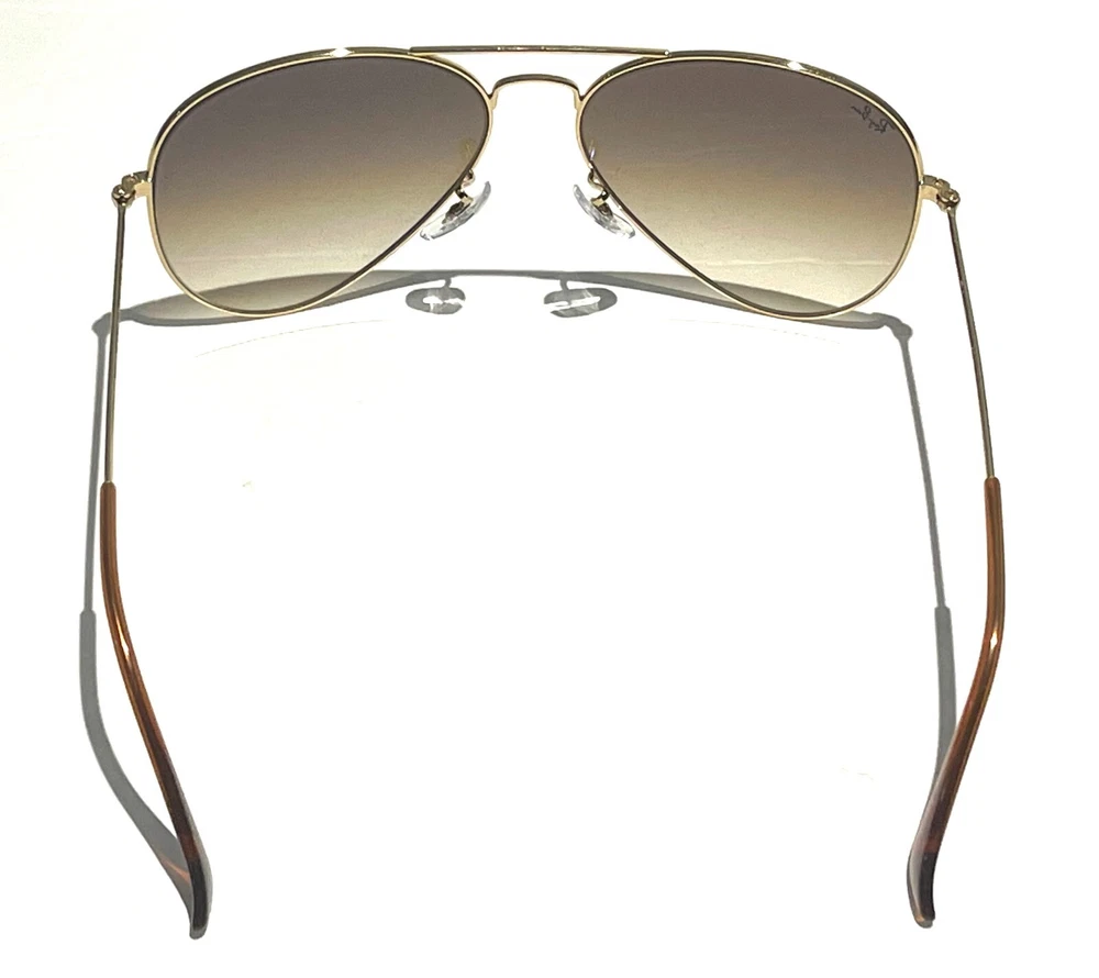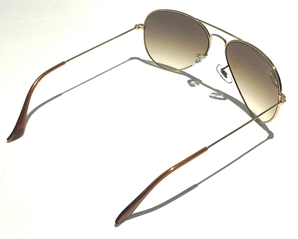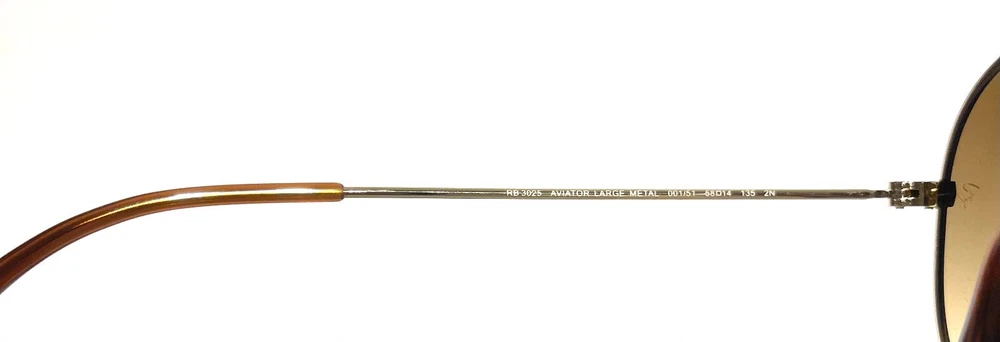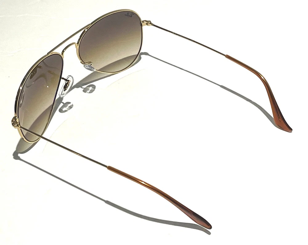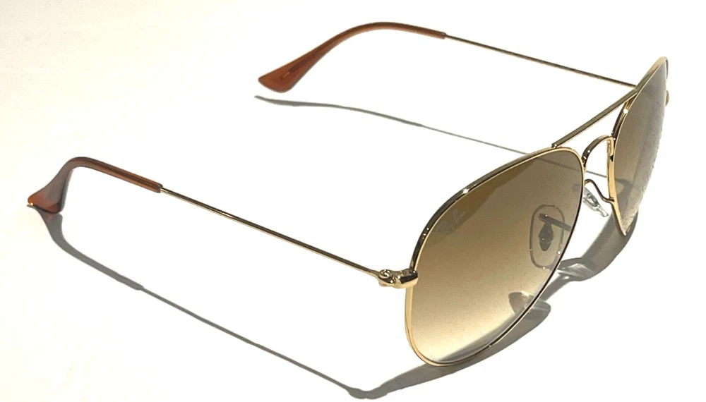 GUARANTEED 100% AUTHENTIC Product Details: Model code: RB3025 001/51 58-14 Currently one of the most iconic sunglass models in the world, Ray-Ban Aviator Classic were originally designed for U.S. aviators in 1937. Aviator Classic sunglasses are a timeless model that combines great styling with exceptional quality, performance and comfort. With a classic gold frame, you can see the world with optimum visual clarity and 100% UV protection. Frame material: Metal Frame color: Gold Lenses: Light Brown Gradient Shape: Pilot Size lens-bridge: 58 14 Temple Length: 135 Package includes: microfiber cloth, paperwork, Ray-Ban Sunglasses, case and outer box. Shipped with USPS First Class. thank you for shopping with us !!
