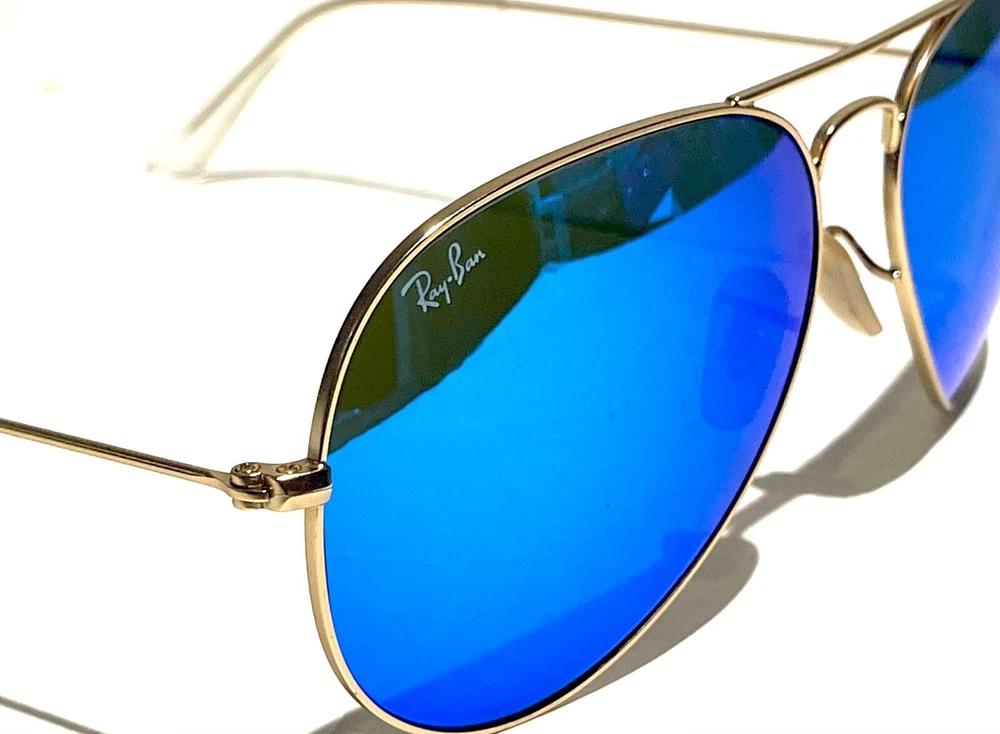 GUARANTEED 100% AUTHENTIC Product Details: Model code: RB3025 112/17 62-14 Currently one of the most iconic sunglass models in the world, Ray-Ban Aviator Classic were originally designed for U.S. aviators in 1937. Aviator Classic sunglasses are a timeless model that combines great styling with exceptional quality, performance and comfort. With a classic gold frame, you can see the world with optimum visual clarity and 100% UV protection. Frame material: Metal Frame color: Gold Lenses: Blue Flash Shape: Pilot Size lens-bridge: 62 14 Temple Length: 140 Package includes: microfiber cloth, paperwork, Ray-Ban Sunglasses, case and outer box. Shipped with USPS First Class. thank you for shopping with us !!