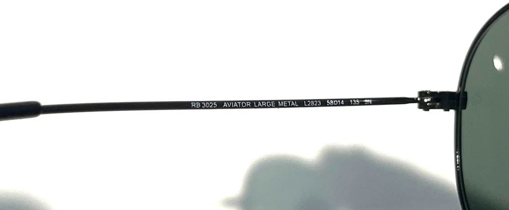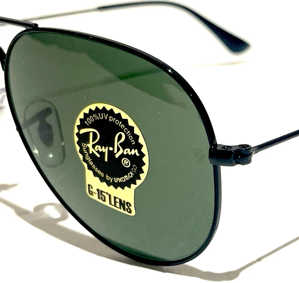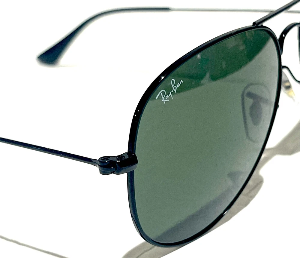 GUARANTEED 100% AUTHENTIC Product Details: Model code: RB3025 L2823 58-14 Currently one of the most iconic sunglass models in the world, Ray-Ban Aviator Classic were originally designed for U.S. aviators in 1937. Aviator Classic sunglasses are a timeless model that combines great styling with exceptional quality, performance and comfort. With a classic gold frame, you can see the world with optimum visual clarity and 100% UV protection. Frame material: Metal Frame color: Black Lenses: Classic Green G-15 Shape: Pilot Size lens-bridge: 58 14 Temple Length: 135 Package includes: microfiber cloth, paperwork, Ray-Ban Sunglasses, case and outer box. Shipped with USPS First Class. thank you for shopping with us !!