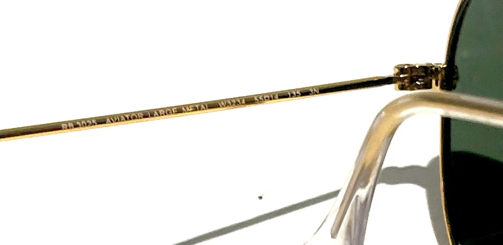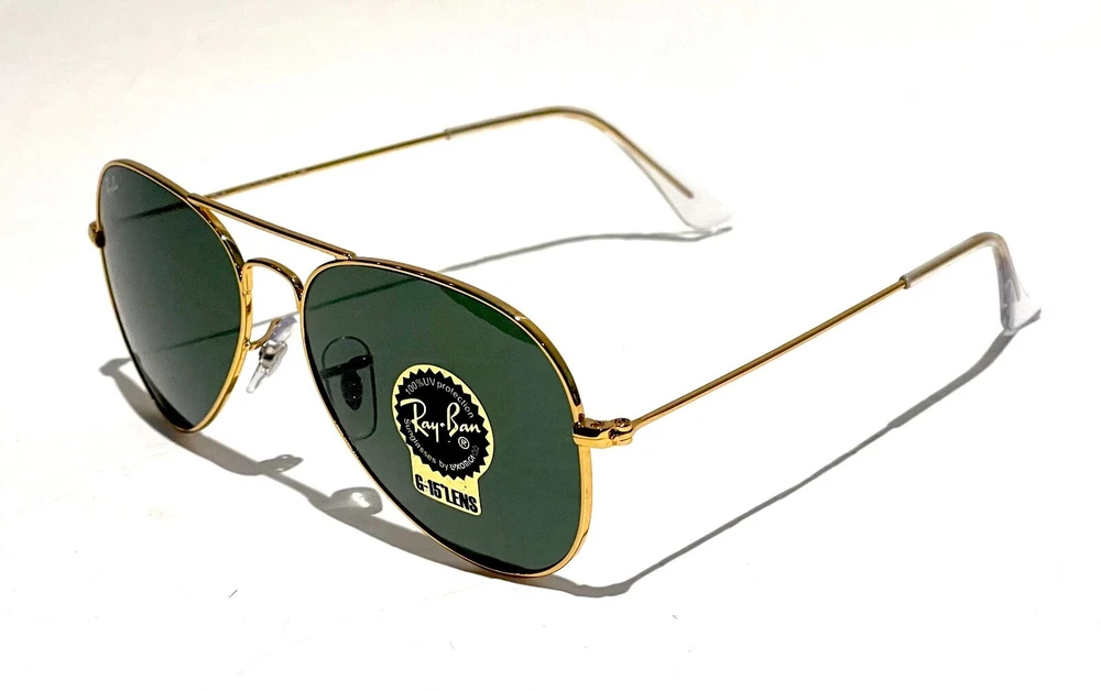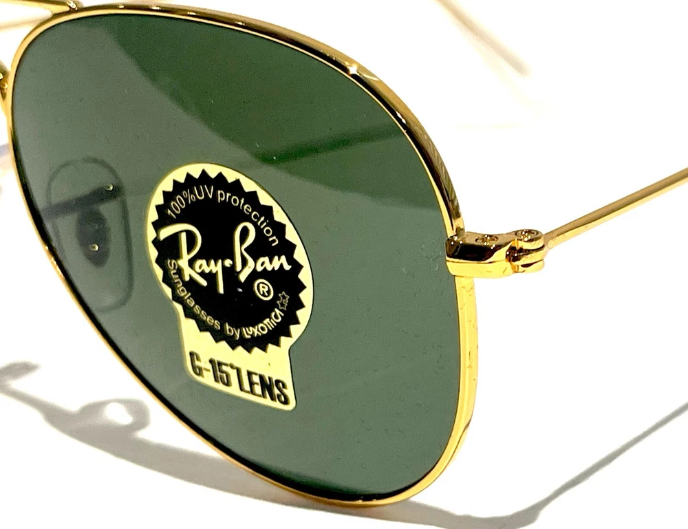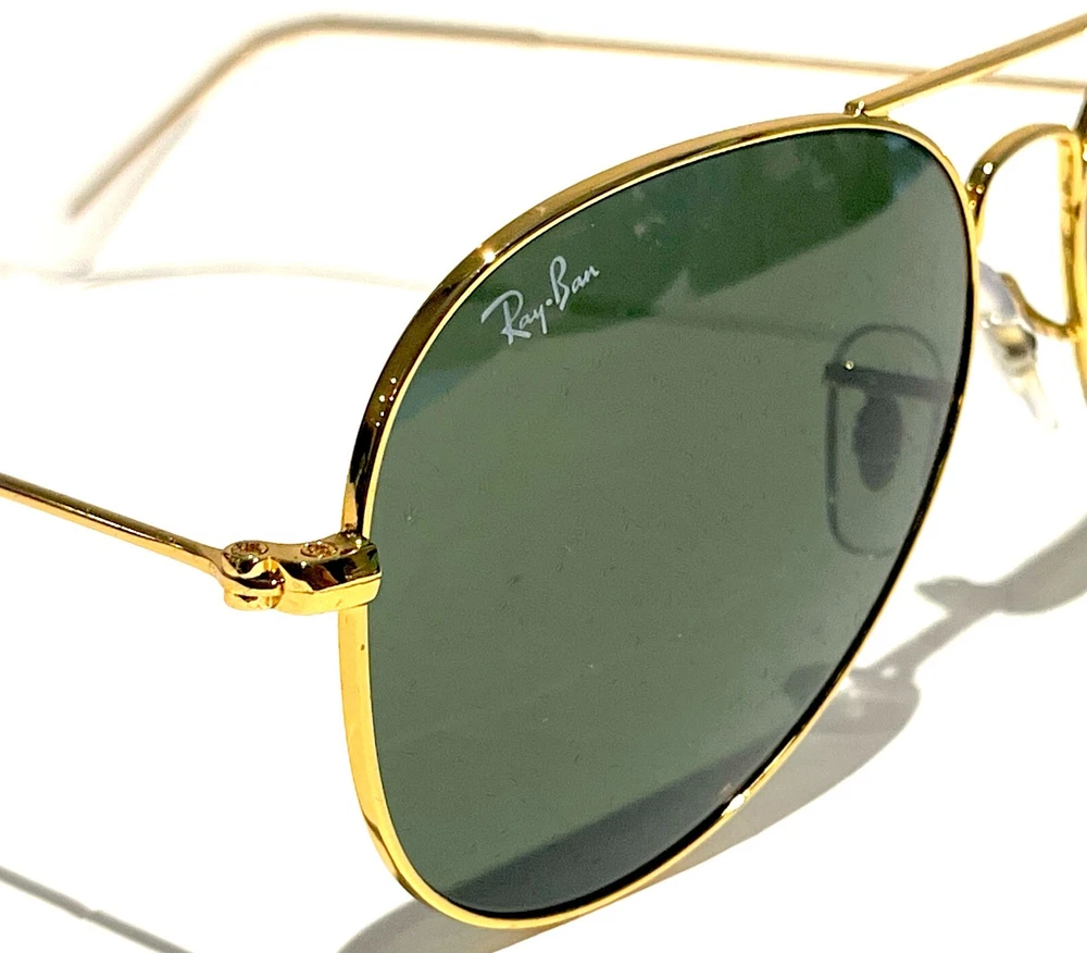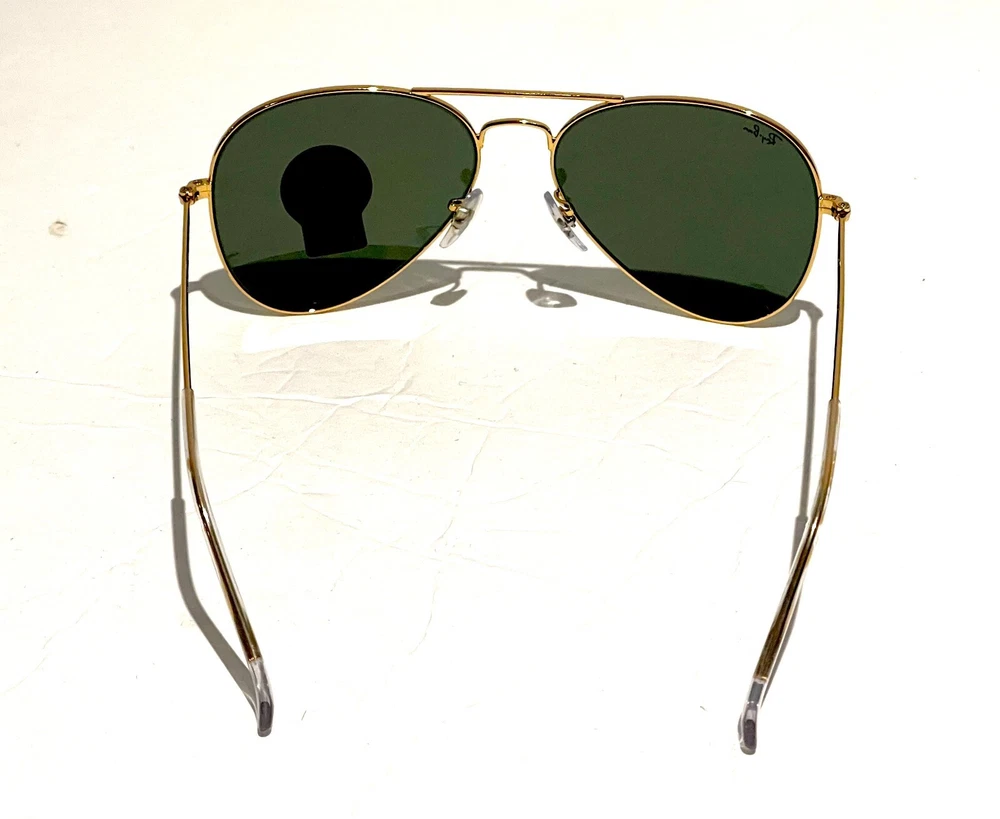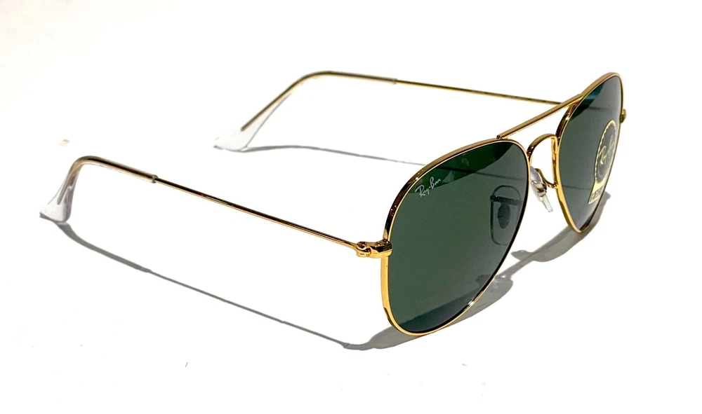 GUARANTEED 100% AUTHENTIC Product Details: Model code: RB3025 W3234 55-14 Currently one of the most iconic sunglass models in the world, Ray-Ban Aviator Classic were originally designed for U.S. aviators in 1937. Aviator Classic sunglasses are a timeless model that combines great styling with exceptional quality, performance and comfort. With a classic gold frame, you can see the world with optimum visual clarity and 100% UV protection. Frame material: Metal Frame color: Gold Lenses: Classic Green G-15 Shape: Pilot Size lens-bridge: 55 14 Temple Length: 135 Package includes: microfiber cloth, paperwork, Ray-Ban Sunglasses, case and outer box. Shipped with USPS First Class. thank you for shopping with us !!