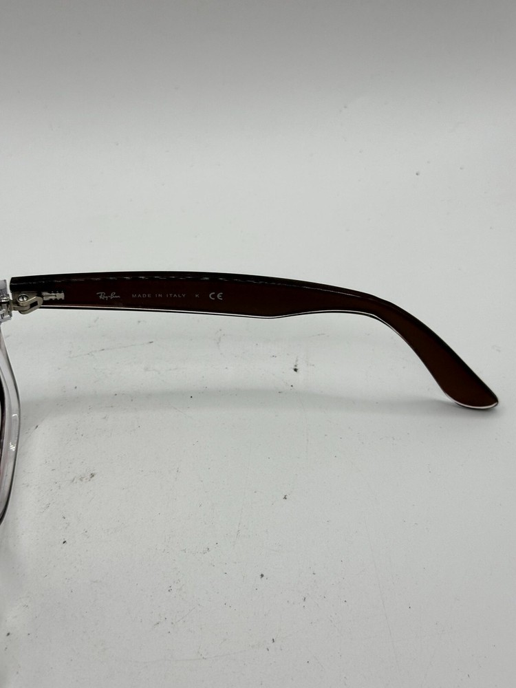 Features: Lightweight Frame Material: Plastic Vintage: No MPN: RB2132 Style: Square Lens Technology: Mirrored Frame Color: Brown Clear Seller Notes: “Good Condition.” Type: Sunglasses UPC: Does not apply Country/Region of Manufacture: Italy Pattern: Solid Theme: Classic Brand: Ray-Ban gtin13: Does not apply Department: Unisex Adults Model: Ray-Ban New Wayfarer RB2132 6145/85 Personalized: No