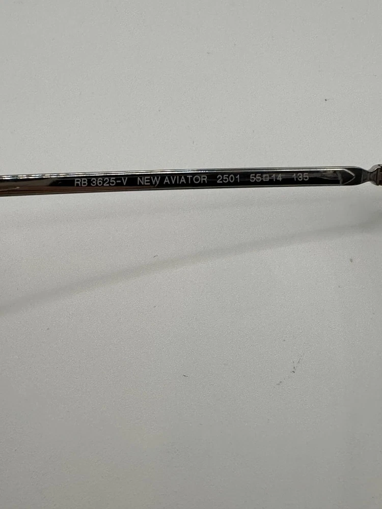 Pattern: Solid Bridge Width: 19 mm Vintage: No Country/Region of Manufacture: Italy gtin13: Does not Apply UPC: Does not Apply Lens Socket Width: 55 mm Model: Ray-Ban Optics RB3625-V 2501 Department: Men Style: Pilot Features: Full Rim, Round Personalized: No Frame Color: Polished Silver Brand: Ray-Ban Type: Eyeglasses Frame Material: Metal Temple Length: 135 mm MPN: RB3625-V Theme: Modern Seller Notes: “Good Condition.”