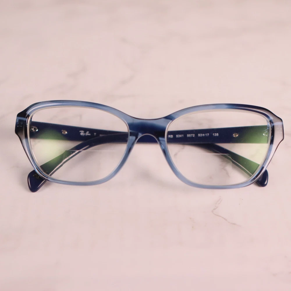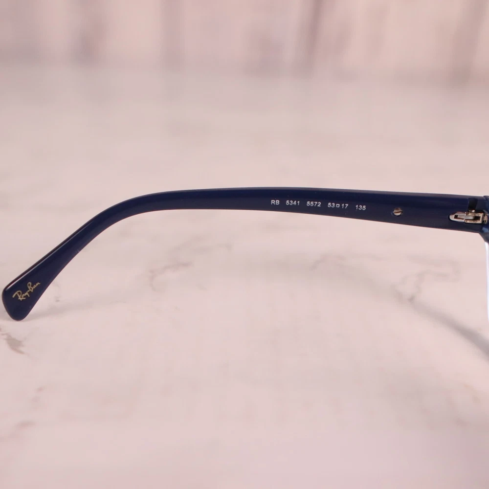 gtin13: 790492295359 Lens Socket Width: 53 mm Frame Color: Blue Seller Notes: “Frame only, the lens are scuffed/scratched and will need replaced.” Bridge Width: 17mm Style: Rectangle Features: Full Rim, Rectangular Temple Length: 135mm Vintage: No Department: Women UPC: 790492295359 Theme: Modern Model: RB 5341 5572 Type: Eyeglasses Brand: Ray-Ban Country/Region of Manufacture: China