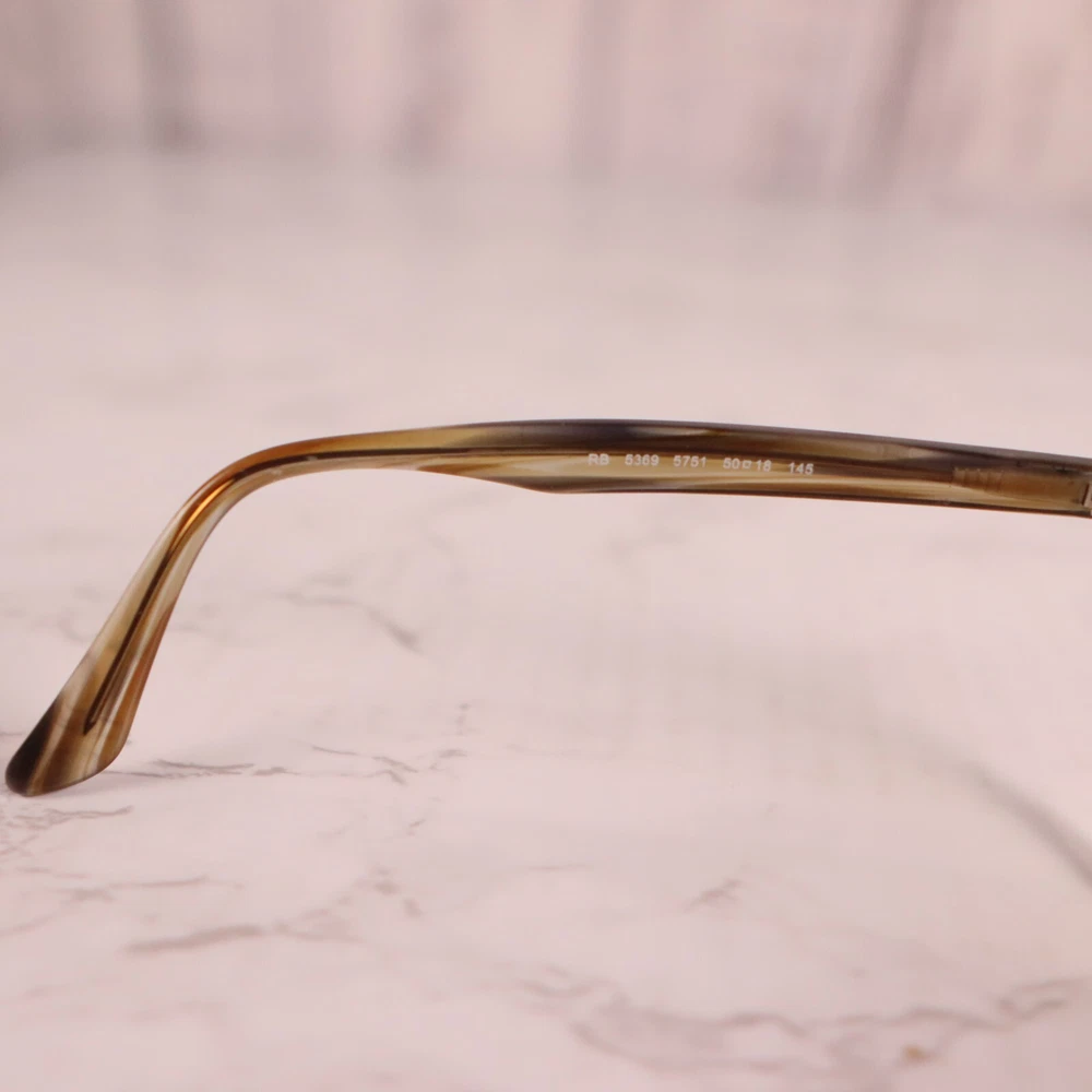 Type: Eyeglasses Brand: Ray-Ban Temple Length: 145 mm Frame Material: Acetate, Plastic Personalized: No Frame Color: Brown MPN: RB 5369 5751 Seller Notes: “Frame only, the lens are scuffed/scratched and will need replaced.” Pattern: Striped Model: Ray-Ban RB 5369 5751 Features: Full Rim, Rectangular, Square Country/Region of Manufacture: China gtin13: Does not apply Theme: Designer, Modern, Tortoise Bridge Width: 18 mm Style: Full Rim Department: Unisex Adults UPC: Does not apply Vintage: No Lens Socket Width: 50 mm