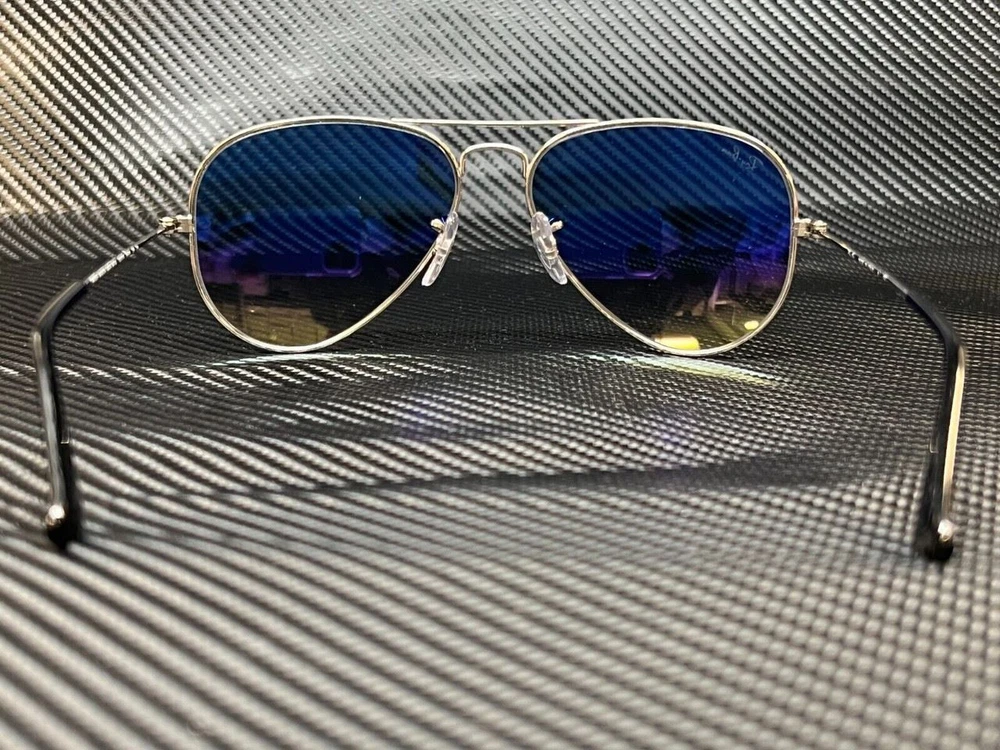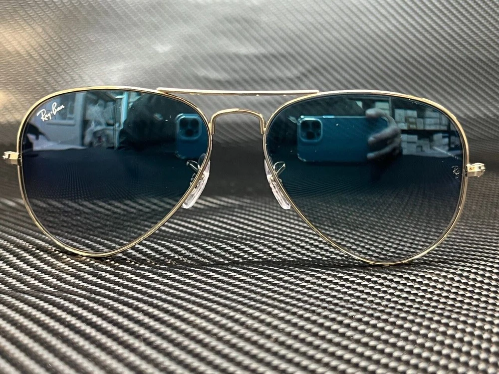 GUARANTEED 100% AUTHENTIC Product Details: Model code: RB3025 003/3F 58-14 Currently one of the most iconic sunglass models in the world, Ray-Ban Aviator Classic were originally designed for U.S. aviators in 1937. Aviator Classic sunglasses are a timeless model that combines great styling with exceptional quality, performance and comfort. With a classic Silver frame, you can see the world with optimum visual clarity and 100% UV protection. Frame material: Metal Frame color: Silver Lenses: Light Blue Gradient Shape: Pilot Size lens-bridge: 58 14 Temple Length: 135 Package includes: microfiber cloth, paperwork, Ray-Ban Sunglasses, case and outer box. Shipped with USPS First Class. thank you for shopping with us !!