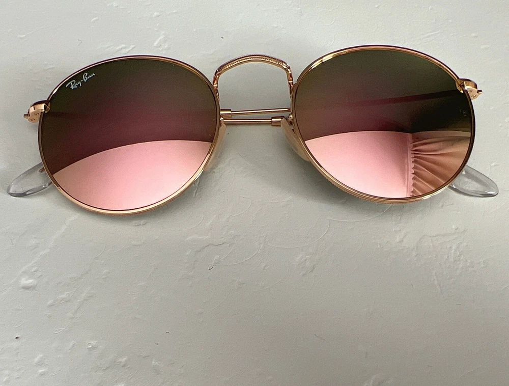 Country/Region of Manufacture: Italy Brand: Ray-Ban Type: Sunglasses Features: Lightweight, Reflective Pattern: Solid Personalized: No MPN: RB3447 Lens Material: Mirror Lens Technology: Mirrored Theme: 80s, 90s, American, Beach, Biker, Classic, Holiday, Retro, USA Temple Length: 135 mm Vintage: No Style: Round Frame Material: Metal Lens Color: Pink Department: Women UV Protection: UV400 Frame Color: Gold Model: RayBan RB3447