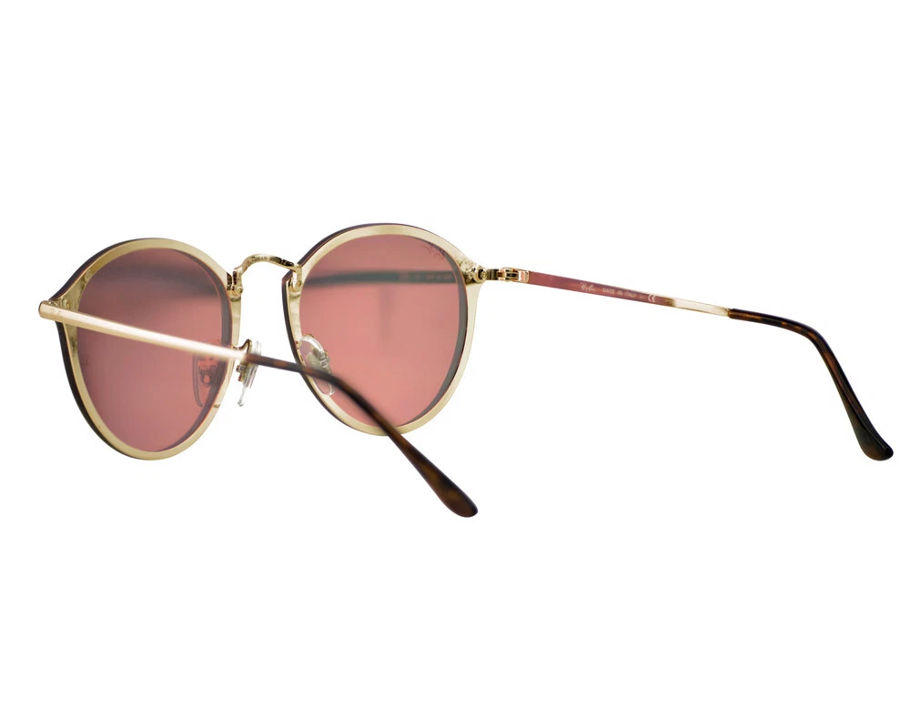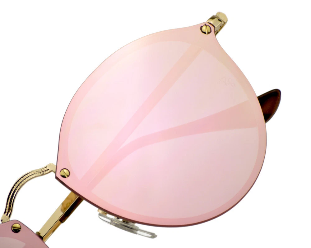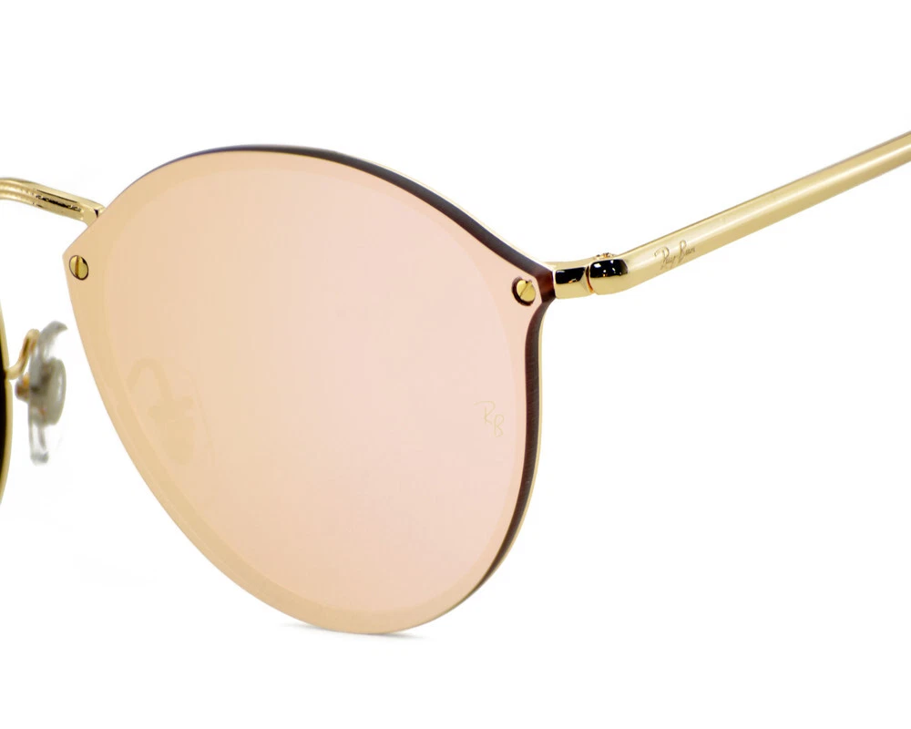 Frame Material: Metal Lens Material: Plastic Department: Men Lens Color: Pink Model: RB3574N Brand: Ray-Ban Lens Technology: Mirrored Personalized: No Features: Reflective, Rimless Country/Region of Manufacture: Italy Type: Sunglasses Style: Blaze Round UV Protection: 100% UV Temple Length: 145 mm Vintage: No Frame Color: Gold Theme: Colorful MPN: RB3574N