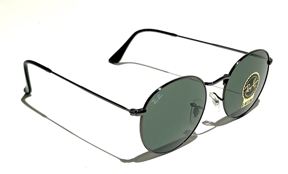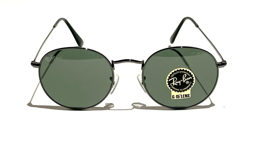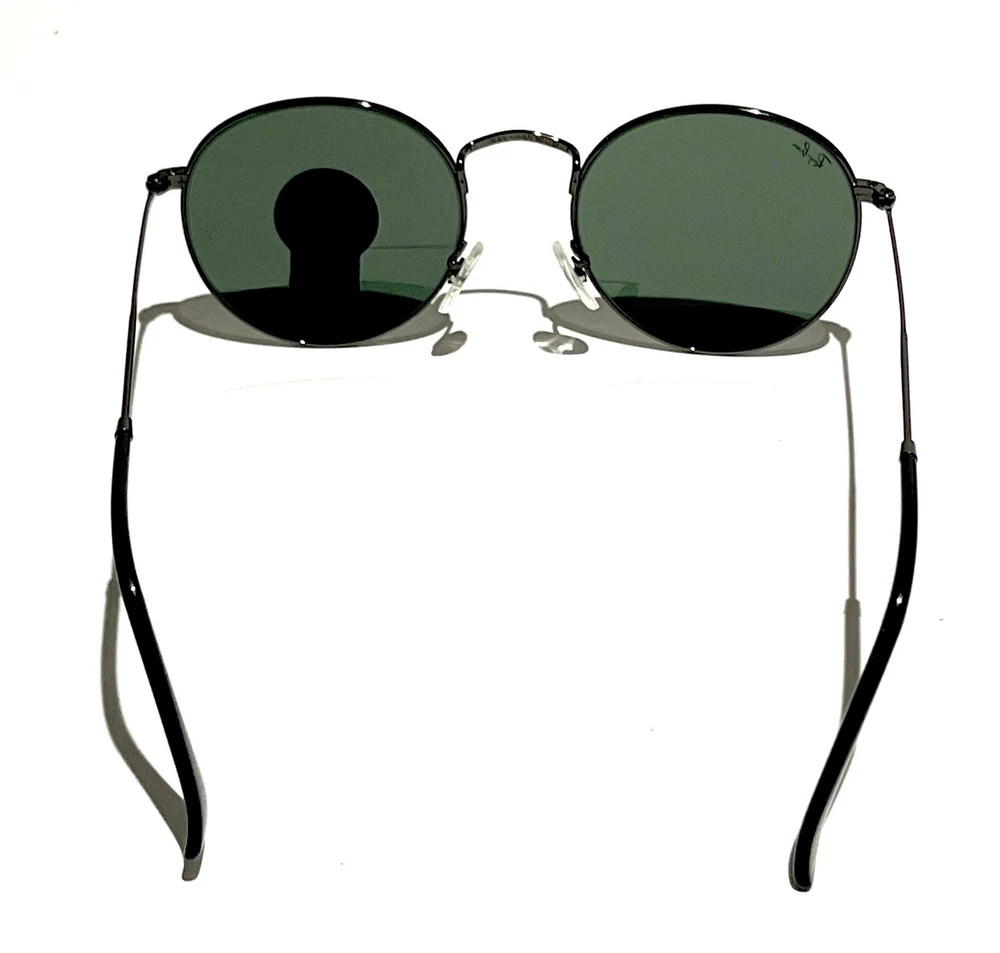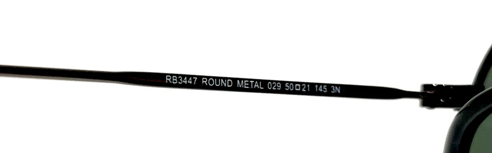 GUARANTEED 100% AUTHENTIC Product Details: Model code: RB3447 029 50-21 The Ray-Ban Round Metal sunglasses are totally retro. This look has been worn by legendary musicians and inspired by the 1960s counter-culture when this style first originated. The Ray-Ban unisex metal, iconic sunglasses are known for their defined round crystal lenses and distinct shape. A curved brow bar, adjustable nose pads, and thin metal temples with plastic end tips rest comfortably behind the ears. Available with Legend Gold lens logo, straight from the archive. Frame material: Metal Frame color: Gunmetal Lenses: Classic Green G-15 Shape: Round Size lens-bridge: 50 21 Temple Length: 145 Package includes: microfiber cloth, paperwork, Ray-Ban Sunglasses, case and outer box. Shipped with USPS First Class. thank you for shopping with us !!