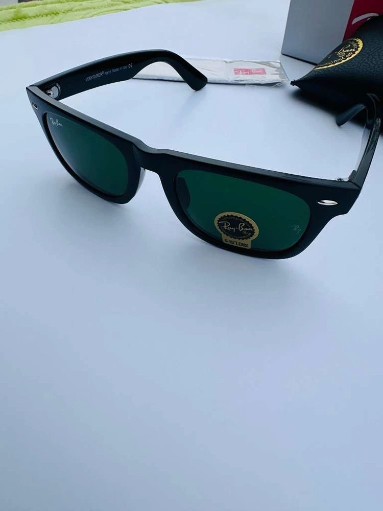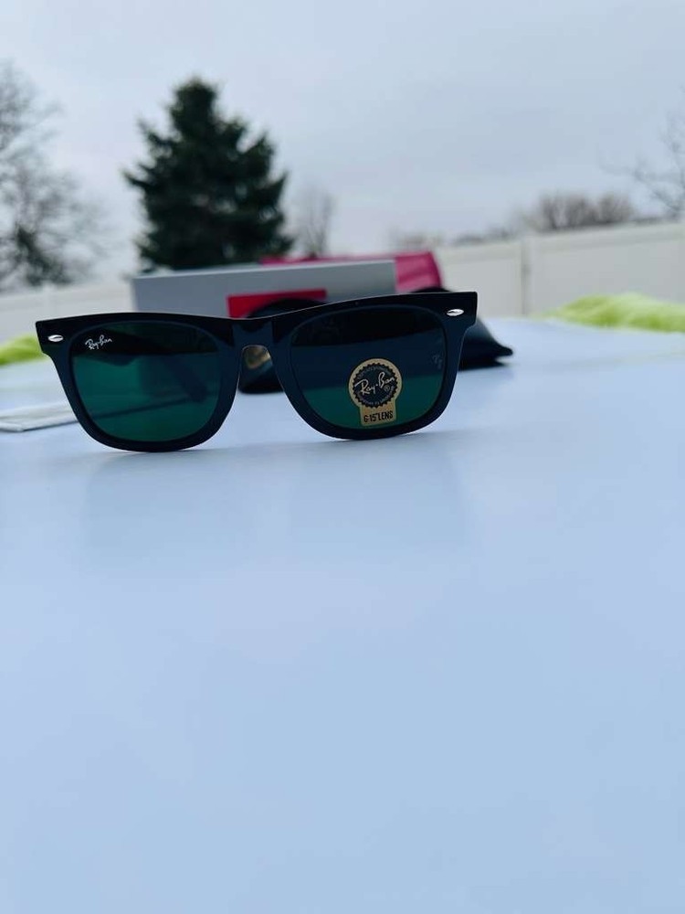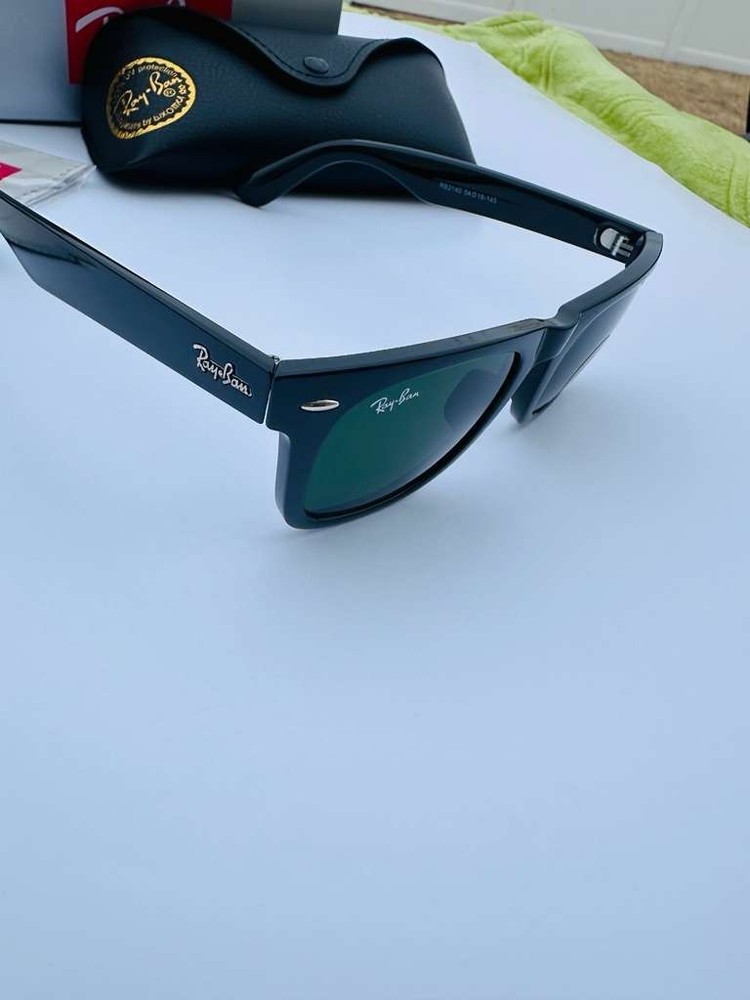 Make a bold statement with these brand new Ray-Ban RB2140 Original Wayfarer Classic sunglasses , a true icon in eyewear fashion. Designed with a sleek black frame and timeless green lenses , this pair delivers a sharp, versatile look that complements any outfit — casual or formal. Crafted by Ray-Ban , the RB2140 features the authentic Original Wayfarer shape, known for its slightly angled lens design and solid, premium acetate construction. The classic green lenses reduce glare, enhance contrast, and provide 100% UV protection to keep your eyes comfortable and protected all day long. Highlights: Model: RB2140 Original Wayfarer Classic Frame: Black acetate Lenses: Green with UV protection Signature Wayfarer silhouette Durable, comfortable fit Unisex design Stylish, practical, and unmistakably iconic — these sunglasses are a must-have accessory that never goes out of style. Brand new and ready to wear.