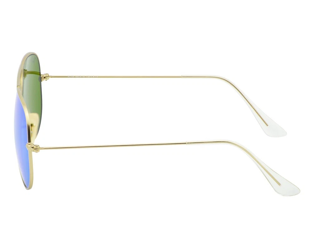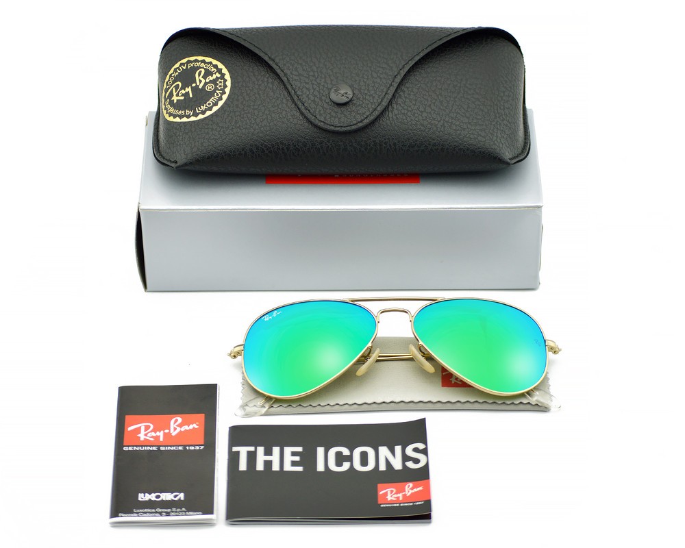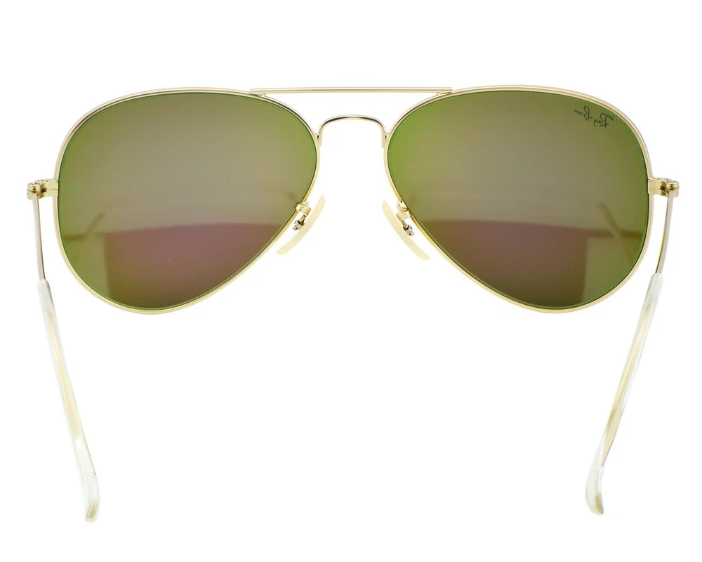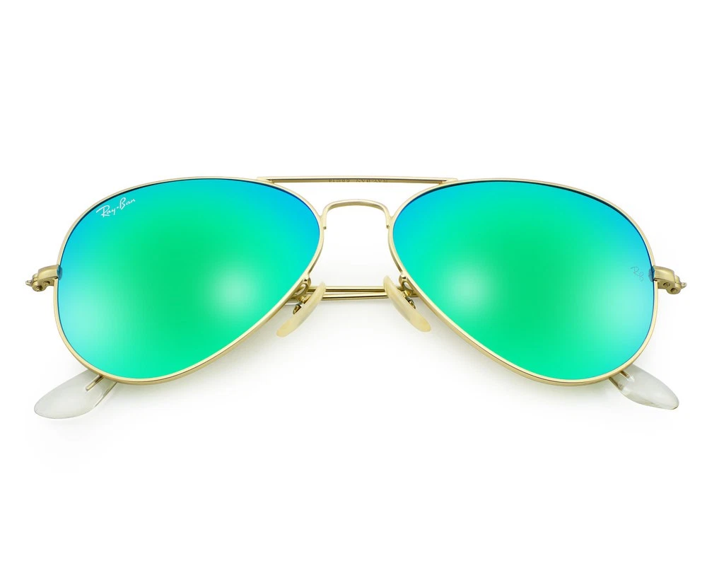 Ray-Ban Sunglasses RB3025 Aviator Flash Gold Frame Green Flash Lens 55mm Unisex Model No.: RB3025 Color No.: 112/19 Size Lens-Bridge: 55 - 14 Temple Length: 135mm Frame Material: Metal Frame Color: Gold Lenses Color: Green Flash Lenses: Non Polarized Shape: Pilot Style: Aviator Flash Lenses UPC: 8053672000566 Experience ultimate eye protection and vision clarity with Ray-Ban sunglasses. Ray-Ban sunglasses are designed to meet your unique vision needs and are certified with an engraved Ray-Ban signature on the right lens, and the iconic RB initials on the left. Our lenses provide 100% UV protection that not only keep harmful glare and reflections at bay, but also protect your eyes from the sun rays. Trust Ray-Ban to provide superior eye protection and a style that truly reflects your personality. Package Includes: 1X Ray-Ban cleaning cloth 2X Ray-Ban booklet 1X Ray-Ban case 1X Ray-Ban box 1X Protect outer box 1X Mini Screwdriver Repair Tool (*In selected models only) G.W: 300g/Pair The product is shipped by USPS within 1-2 business days and arrives at destination after 2-8 business days
