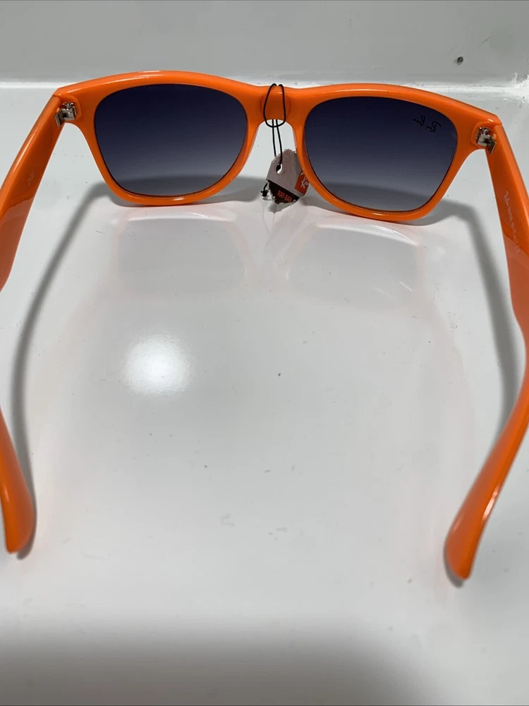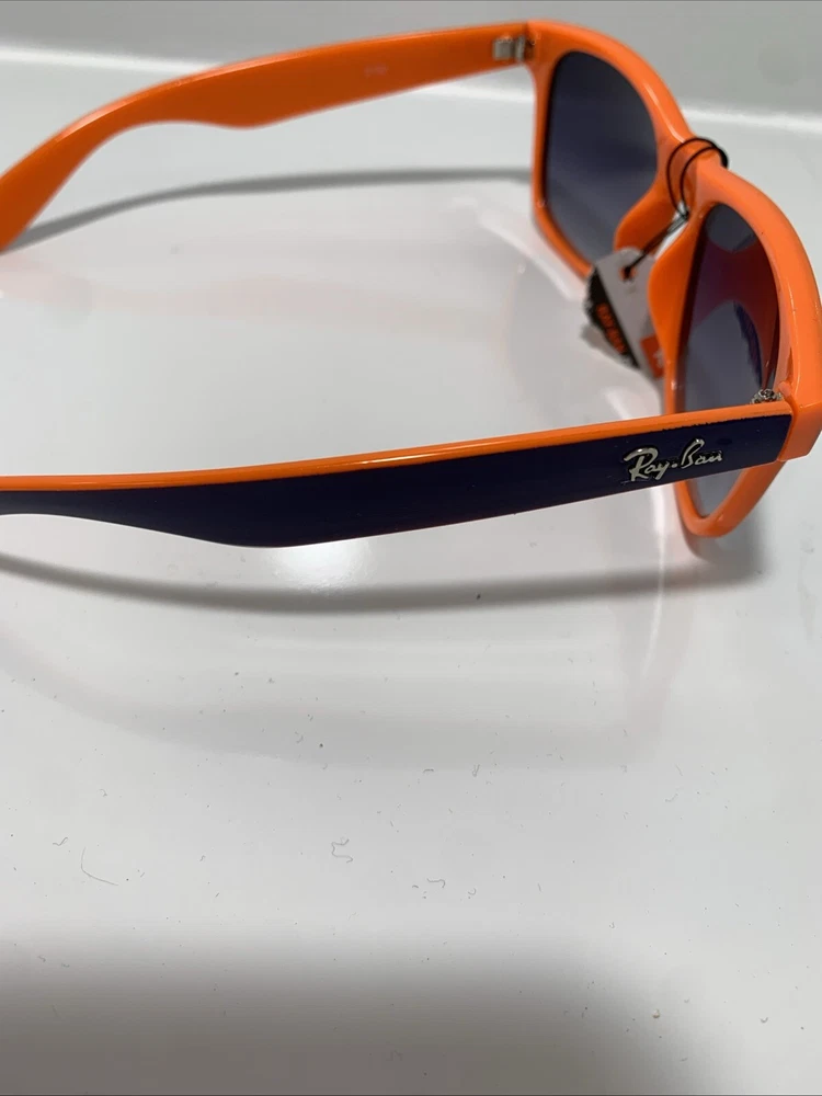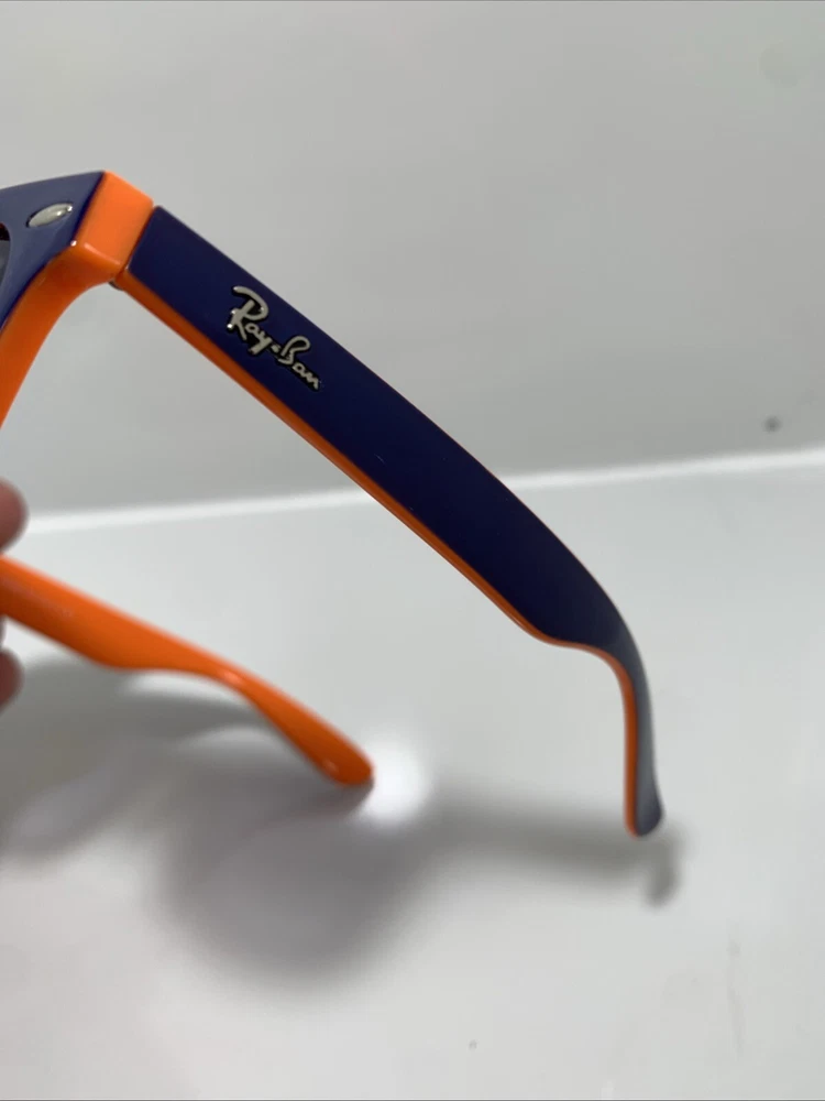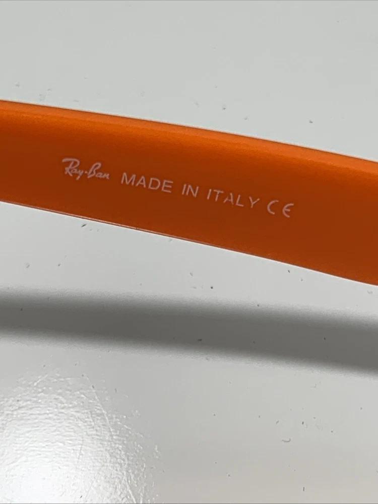 very clean ray bans used but sunglasses blue and orange. never worn still has a ripped tag. Made in Italy not china . no case