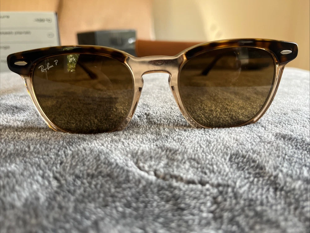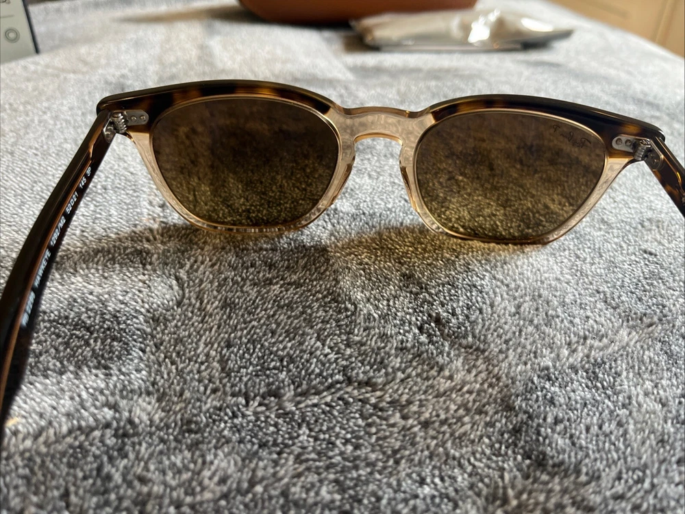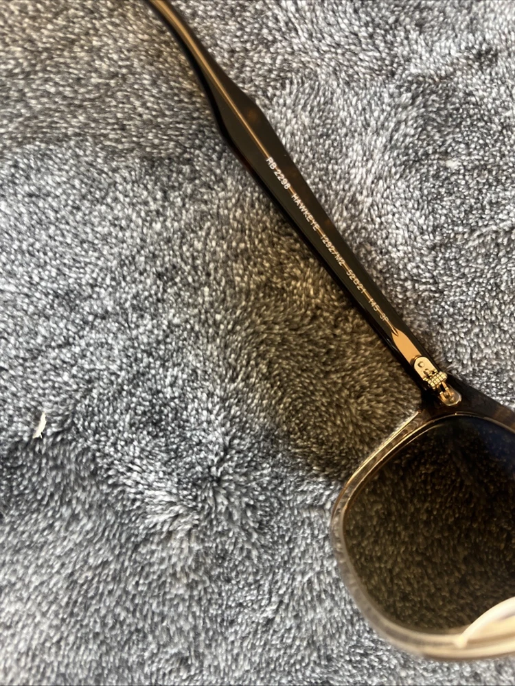 Introducing the Ray-Ban Hawkeye RB2298 1292/m2 sunglasses, perfect for anyone looking to add a touch of style to their outfit. The other markings on the arm are 52-21 145 3p. These were worn once - they don’t fit me because the bridge fit is too low for me. So look at images closely to see if it works for you. These sunglasses are made with high-quality glass lenses, ensuring clear vision and protection from harmful UV rays. The sleek design of these sunglasses is perfect for men and can be easily paired with any outfit. As a part of the Ray-Ban brand, these sunglasses are a must-have for anyone looking for a stylish and reliable pair of sunglasses.
