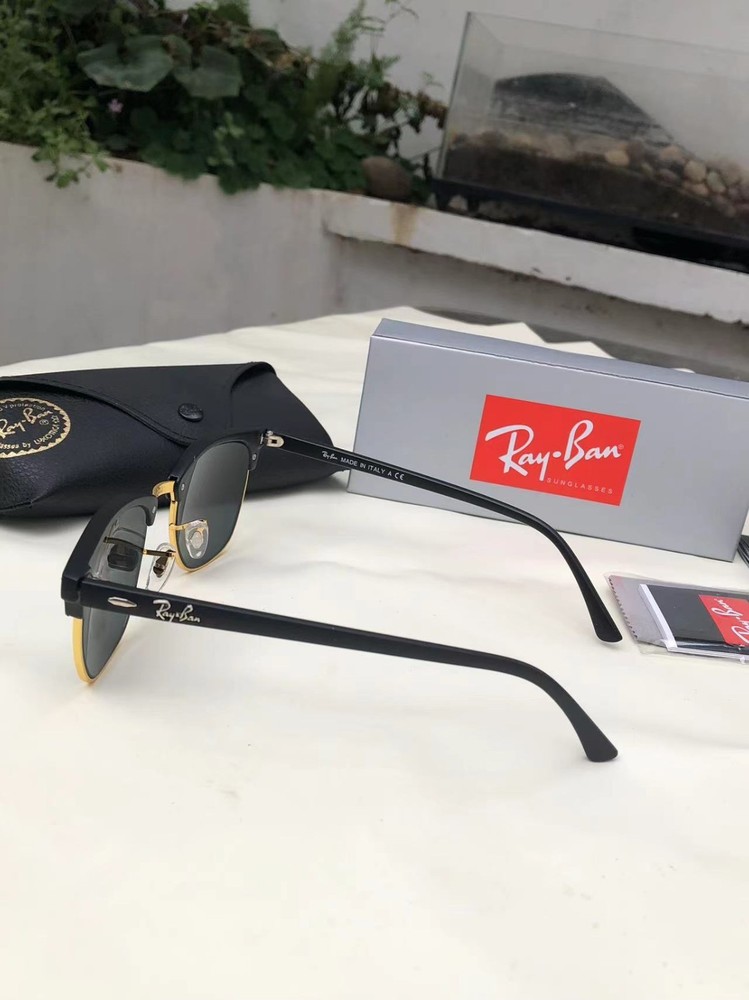 The Rayban RB3016 Clubmaster sunglasses feature a classic black frame with silver lenses, designed for both men and women. These stylish sunglasses are equipped with mirrored and polarized lens technology, providing protection from UV rays and reducing glare. The frames are made of durable polycarbonate material, ensuring long-lasting durability and eye comfort. The iconic Ray-Ban Clubmaster model combines timeless style with modern functionality, making it a must-have accessory for any fashion-forward individual. 3016-1