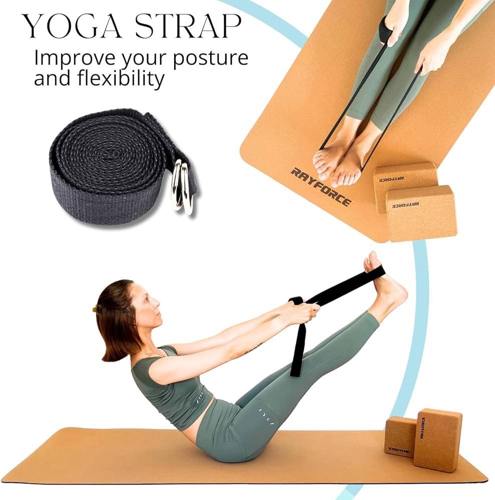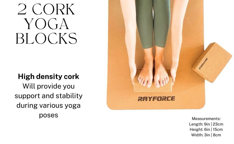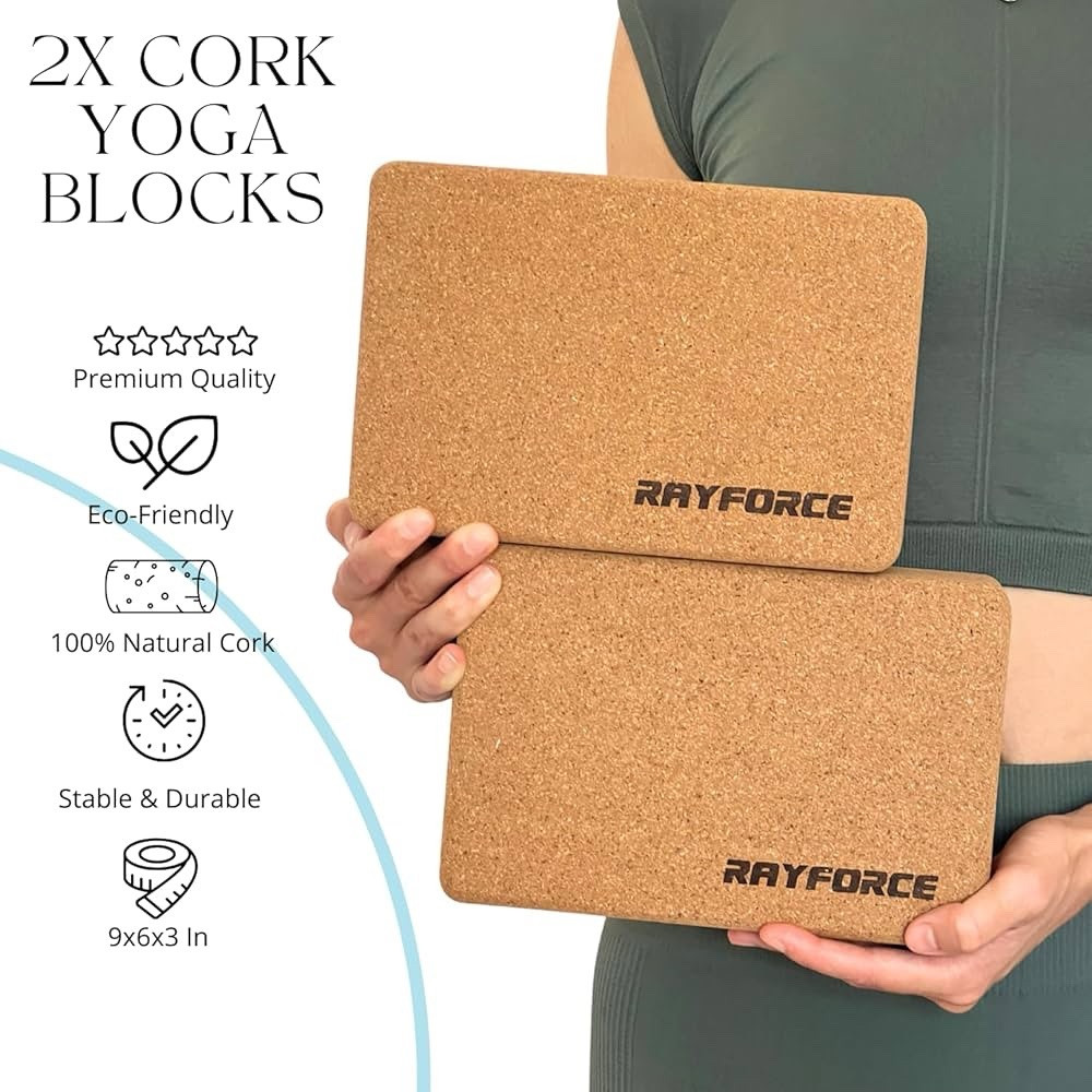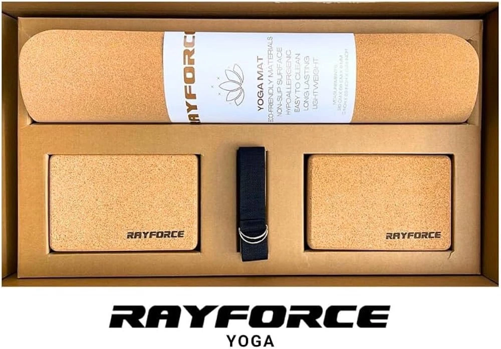 The Rayforce Premium Cork Yoga Starter Set includes a large cork yoga mat, 2 cork blocks, and a bag, making it an ideal kit for those beginning their yoga practice. The use of cork material provides a natural and eco-friendly option for a comfortable and non-slip surface during yoga sessions. This set is designed to enhance your yoga experience with high-quality materials that are both durable and sustainable, perfect for individuals looking to start their yoga journey with premium gear.