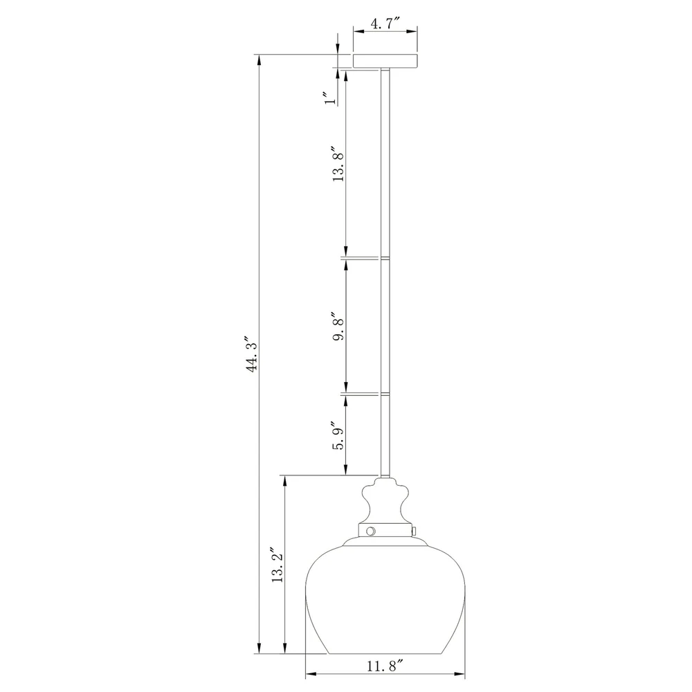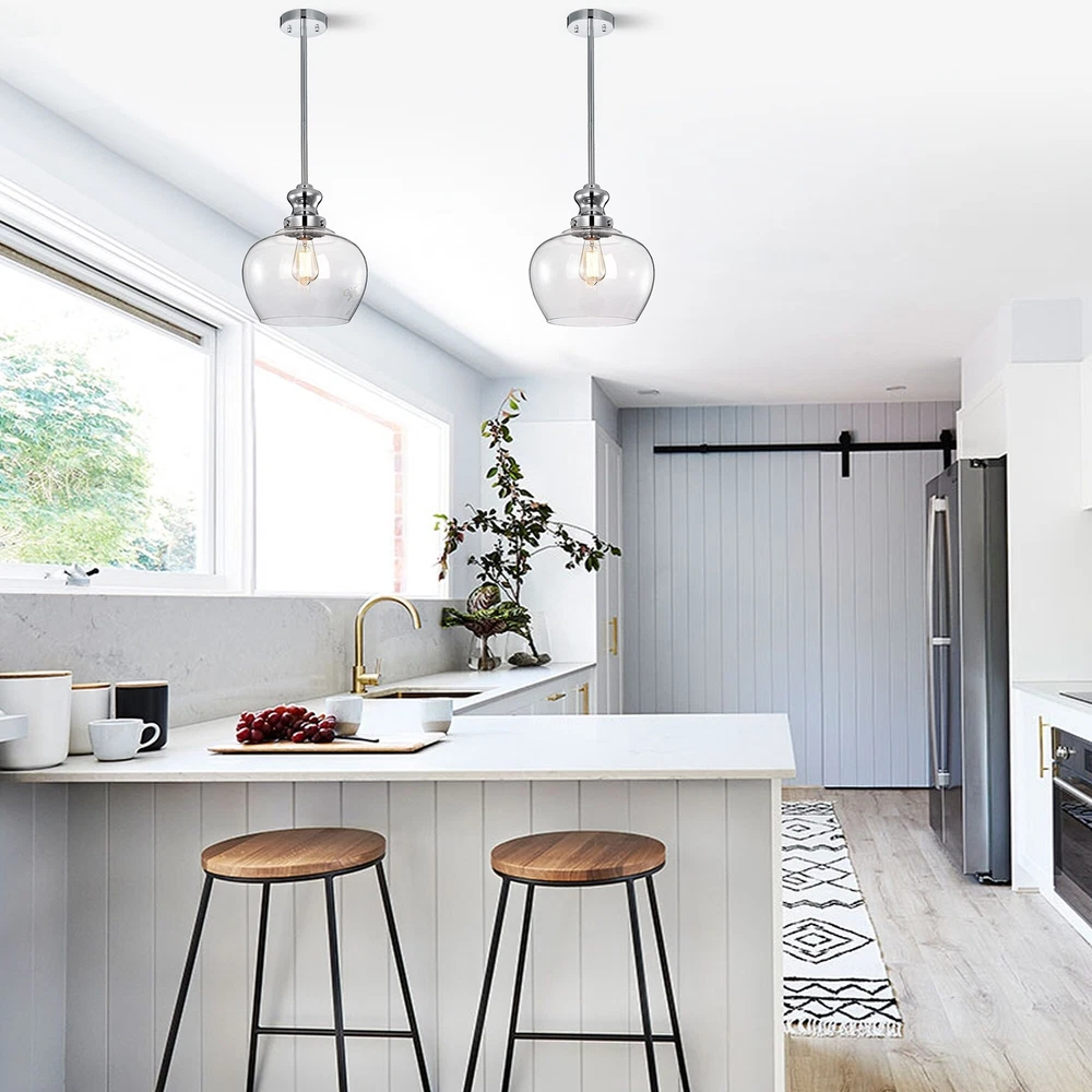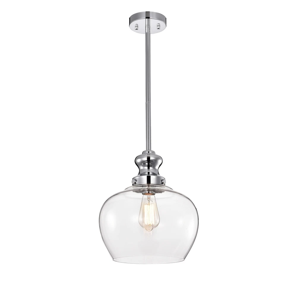 Description:Add a soft and warm lighting over your kitchen, dining room or living room with this Kenzy pendant lamp. This pendant light features one light bulb inside a clear bowl glass shade that emits ample lighting in a wide area. It boasts a chrome finish that showcases a stylish and elegant appeal.Features:Lighting Type: PendantFixture Finish: ChromeShade Material: GlassShade Color: ClearSetting: IndoorNumber of Lights: One (1)Bulb Type: 60-W E26 (not included)Hang Type: DownrodHardwiredDimensions:Overall: D 12 x H 44 inchesFixture: D 12 x H 13 inchesCanopy: D 5 x H 1 inchesHang Length: 31 inches (adjustable) Free Shipping Over $49.99* Details Rayli Chrome 1-Light Clear Bowl Glass Pendant Light Product Description: Description: Add a soft and warm lighting over your kitchen, dining room or living room with this Kenzy pendant lamp. This pendant light features one light bulb inside a clear bowl glass shade that emits ample lighting in a wide area. It boasts a chrome finish that showcases a stylish and elegant appeal. Features: Lighting TypePendant Fixture FinishChrome Shade MaterialGlass Shade ColorClear SettingIndoor Number of LightsOne (1) Bulb Type60-W E26 (not included) Hang TypeDownrod Hardwired Dimensions: OverallD 12 x H 44 inches FixtureD 12 x H 13 inches CanopyD 5 x H 1 inches Hang Length31 inches (adjustable)