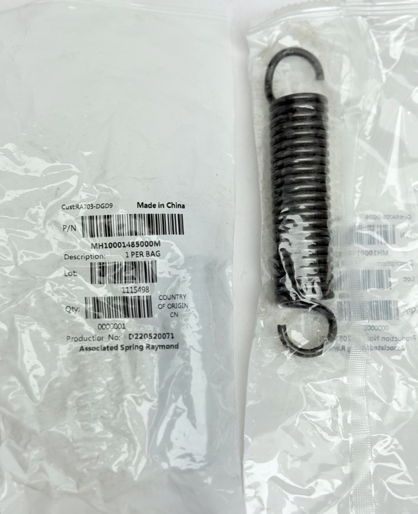 System of Measurement: Inch California Prop 65 Warning: 'for more information go to www.p65warnings.ca.gov' Number in Pack: 2 End Type: Hook Brand: Associated Spring Raymond, Raymond Country/Region of Manufacture: China MPN: MH10001485000M Type: Extension Spring gtin13: N/A Model: MH10001485000M, RA703-DGD9 UPC: N/A