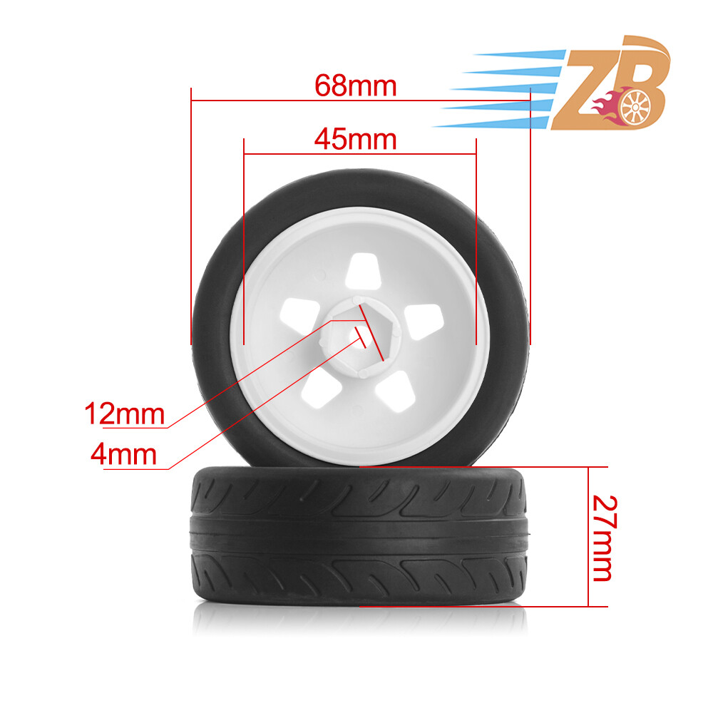 100% Brand New Material: Plastic Wheel / Rubber Tires Rubber Tires Diameter: 68mm / Width:27mm Wheel Diameter: 52mm / Width: 26mm Wheel Hex Drive: 12mm Weight: 120g/sets 4xWheel and 4xTires Complete, Insert Sponge. NOTICE: The wheels and tires are not stuck together, and must be glued before use. Please check the tire size carefully before purchase, and make sure that it is shared with your model car before payment, so as not to load your model car and return it, thank you, I wish you a happy shopping!