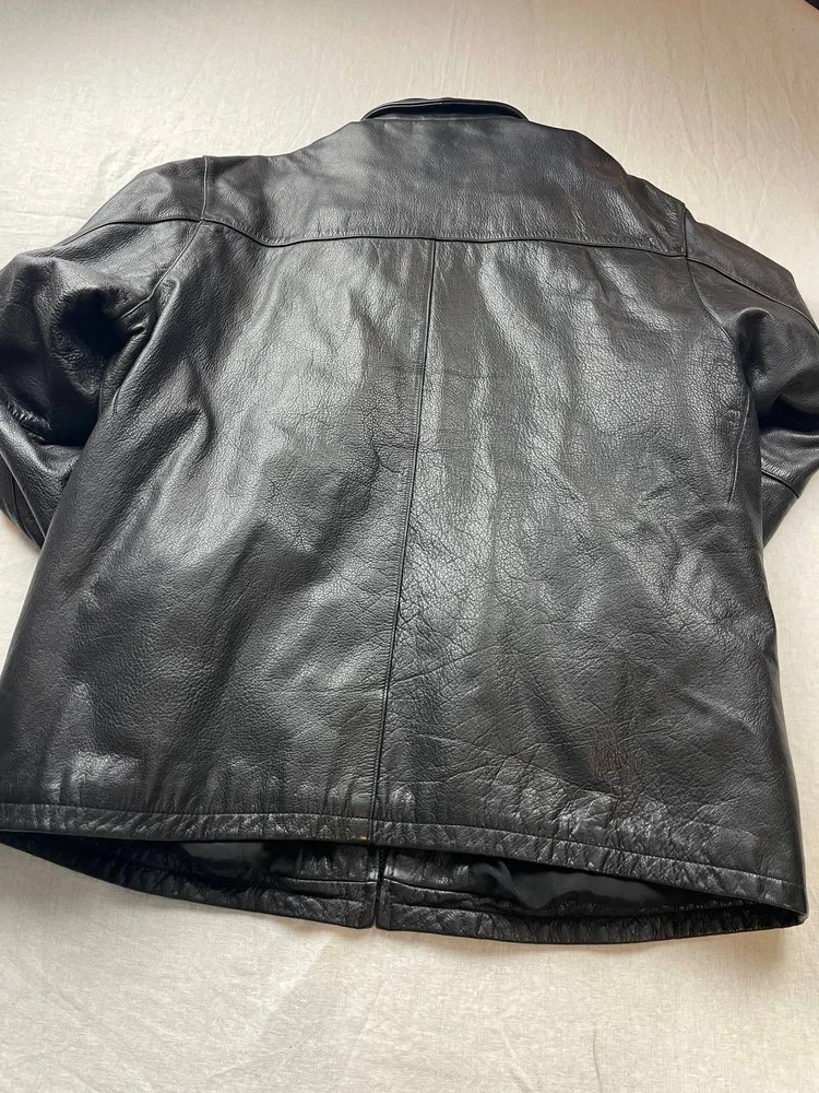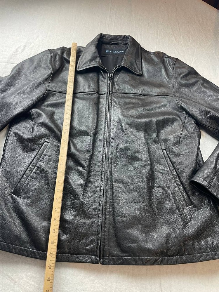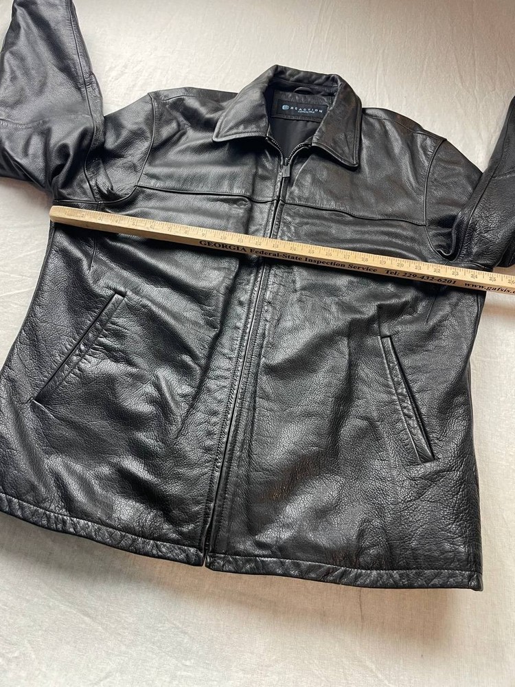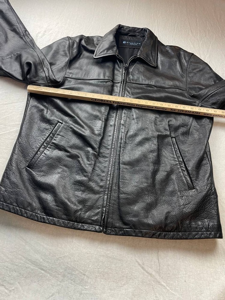 Reaction Kenneth Cole Leather Mens Bomber Jacket Size XL Black Full Zip Pre-owned, exact items on photos