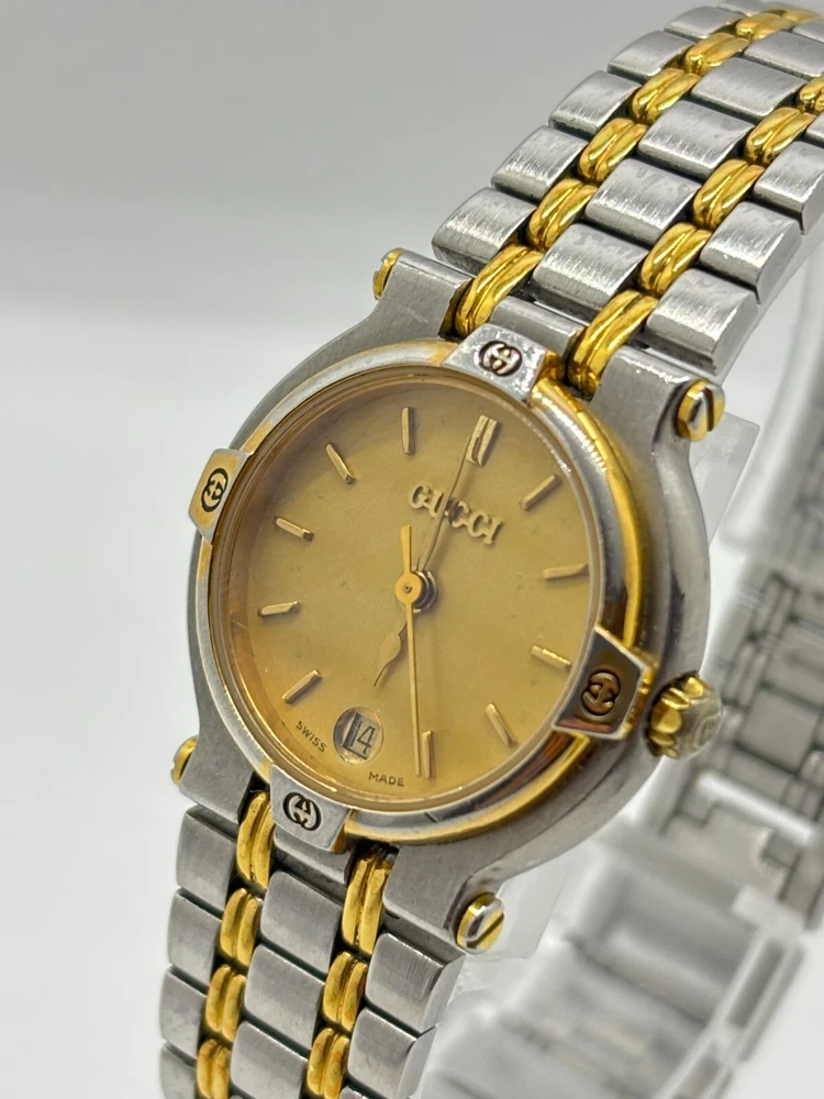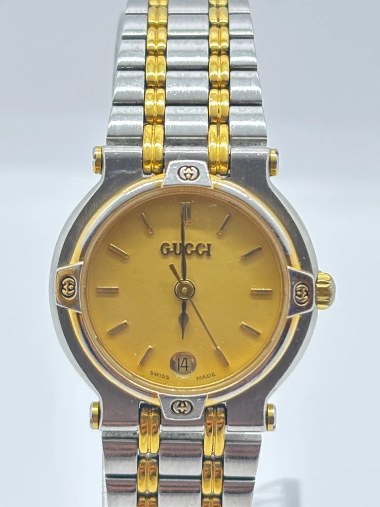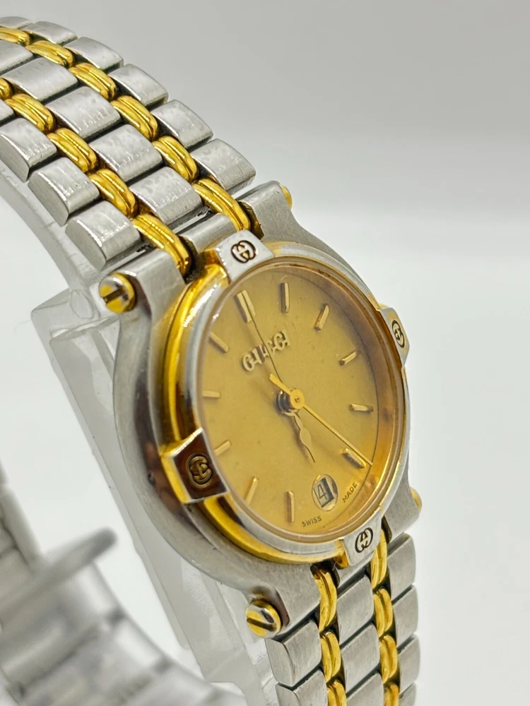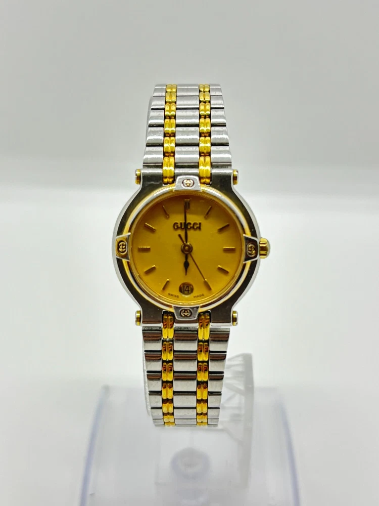 [Read] Gucci 9000L Two Tone Steel 25mm Gold Dial Quartz Not tested For Parts
