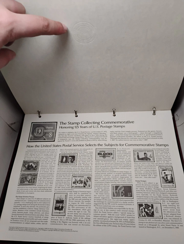 The product is a collection of Reader's Digest first day covers from the 1970s-1980s, originating from the United States. The collection likely includes commemorative envelopes postmarked on the first day of issue for various stamps.