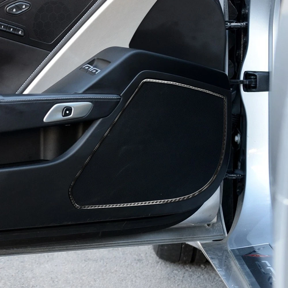 Real Carbon Fiber Interior Door Speaker Panel Frame Trim For Corvette C7 2014-19