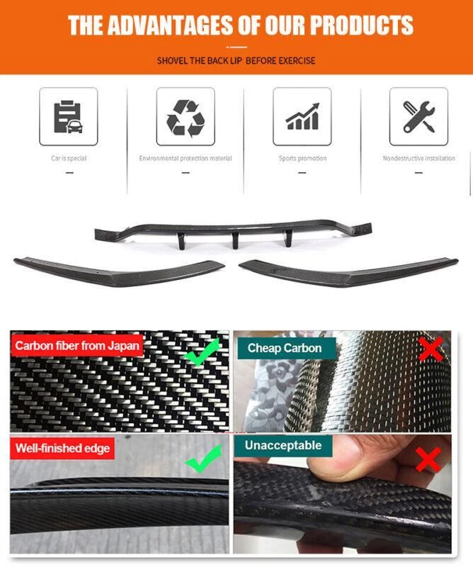 Fitment: Fit For BMW 6 Series GT G32 M-Sport 2017UP Specifications: Product Name: Rear Bumper Lip Material: Carbon Fiber Package Size: 115*20*30cm Package Weight: 4.5kg Features: • Made of High Quality Lightweight Carbon Fiber. • Improve the aerodynamic characteristics by enhancing the transition between the high-speed airflow below the vehicle and the free airflow in the surrounding atmosphere. • Provide space for the airflow under the vehicle to decelerate and expand, thereby providing pressure recovery by providing a degree of "wake fill" or more accurately. • Does not cause excessive airflow separation and resistance and keep driving safety. • Sport style rear diffuser, perfect for decoration, increase both road safety and racing style. Carbon Fiber Rear Bumper Lip FOR BMW TheRear Bumper Lip is one of the simplest mods you can do to the exterior of your car that will give your car that completely different look. Not only are spoilers meant for great looks, they also help Prevent the rear of the car from scratching. Fitment: Fit For BMW 6 Series GT G32 M-Sport 2017UP Specifications: Product Name: Rear Bumper Lip Material: Carbon Fiber Package Size: 115*20*30cm Package Weight: 4.5kg Features: • Made of High Quality Lightweight Carbon Fiber. • Improve the aerodynamic characteristics by enhancing the transition between the high-speed airflow below the vehicle and the free airflow in the surrounding atmosphere. • Provide space for the airflow under the vehicle to decelerate and expand, thereby providing pressure recovery by providing a degree of "wake fill" or more accurately. • Does not cause excessive airflow separation and resistance and keep driving safety. • Sport style rear diffuser, perfect for decoration, increase both road safety and racing style. Package included: • Car Rear Lip Bumper Body Kits • Mounting Accessories Delivery details Payment and TAX Warranty Policy Return Policy Contact us Delivery details NOTE: The shipping fee is only for the mainland of each country, it does not include the overseas territories, such as Virgin Islands (U.S.) , Puerto Rico, Hawaii , French Reunion Island, etc. But on ebay, when buyers from Puerto Rico and overseas territories , the shipping fee is equal to United States, it is NOT correct,. please contact us for correct shipping fee, or we will cancel the order. Sorry for the inconvenience, and thanks for your cooperation. 1. Item will be shipped in 10 days, most within 2 days.usually it takes 7-30 days in transit to most countries. 2. If you want to upgrade the shipping, please contact us before making payment, we will revise the shipping fee. 3. We will ship according to your Ebay address. Please make sure it is correct and include phone number for delivery. If you have any questions , please contact us, we would do our best to serve you solve the problem. Payment and TAX 1.We accept Multiple Payment Methods Available: Credit Card, Debit Card, Gift Card, Apple Pay, Goggle Pay, PayPal and PayPal Cred. 2.Please leave note for your special request (e.g. Colors or Size) in ebay note when you pay the order. 3.Your must complete the payment within 7 days or Ebay will automatically open unpaid item case For US Buyer:The invoice value of each item is less than 800USD ,so you no need to pay any tariff . NON-US Buyer Note: Most countries are tax free based on our invoices, if tax is required, which will be buyer's responsibility. Warranty Policy We Warranty Our Product Within the Limited Warranty Policy Specified on Ebay. Please Email us if ou have any question regarding the warranty policy on a specific item. Most of the items are Aftermarket Parts and they are intended for off-road usage only, therefore no installation instruction will be included, Professional installation are Highly Recommended. We are not responsible for any damages to the item or the vehicle that occur during the installation of the item.Also, Please Make Sure Proper Installation is Performed as we are not responsible for item being missing or flew off after the installation. if you don't think the item can stay on the car properly, please do not attempt to drive the car with it and please check with professional shops/mechanics or contact us for assistance. Return Policy We Accept Returns Within the Return Period On Ebay. Return Authorization/Return Approval is Required For Every Return. So If you Wish to Make a Return On Your Purchase. Please Contact us Before You Send The item back For any damages occured to the item upon arrival, Please notify us within 5 days of the delivery so we can take proper action to fix the issue. So Please Kindly inspect and check the item condition upon arrival.For Any other Return Inquries, You can contact us within the return period to obtain return authorization/return approval. In case of return, the merchandise needs to be returned in original condition with origi- nal packaging in order to be eligible for an exchange or a refund. Items must be not opened in their original package. Any mark of installation, mounting, cutting, scratch or using will not be allowed. Contact us 1.We are trying our best to explain all details of the products here! If you have any question, please feel free to contact us by Ebay message, and We will get back to you within 24-48 hours. 2.Customer satisfaction is our NO.1 priority. If you are not happy with the item that you purchase, please contact us first. We will try our best to solve the problem with you.Please leave us a positive feedback if you receive the item.Please do not leave negative or neutral feedback without any contact.If you haven't received item in 30 days, please contact us and we will arrange refund.We appreciate your business.Happy Bidding & Have a nice day! 3.Working hours: From 8 a.m. to 6 p.m. from Monday to Friday. From 8 a.m. to 12 a.m. on Saturday morning Holiday/Rest time: Saturday afternoon and Sunday