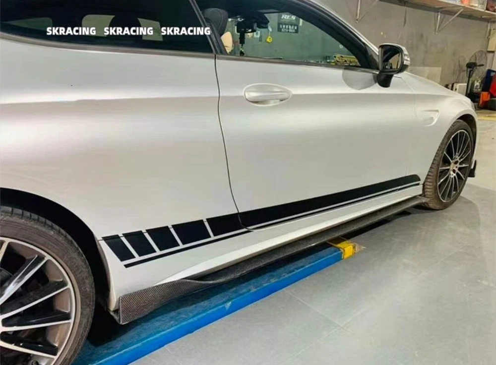 Real Carbon Side Skirt Extension Lip For Benz CLS Class W218 CLS63 AMG 2014-2018