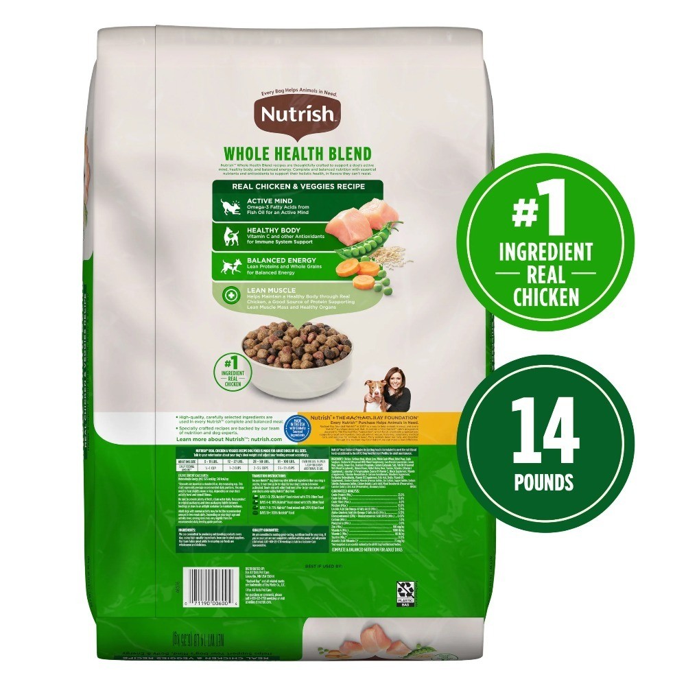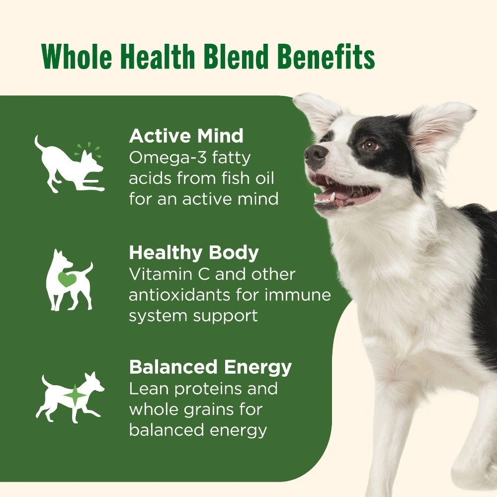 Real Chicken & Veggies Whole Health Blend Dry Dog Food is thoughtfully crafted to support a dogs active mind, healthy body and balanced energy. Made with real chicken as the #1 ingredient, this premium dry dog food delivers high-quality protein to help support lean muscle mass and healthy organs. Perfect for small, medium and large breed adult dogs, this recipe provides complete and balanced nutrition without artificial preservatives, flavors or poultry by-product meal. Your best friend will love the delicious flavor of chicken dog food, and you’ll love knowing that a portion of every purchase supports The Foundation to help animals in need. Treat your dog today with the nutritious and delicious food they want and deserve. Contains one (1) 14-pound bag of dry dog food for small, medium and large breed adult dogs Real chicken is the #1 ingredient and a good source of protein that helps support lean muscle mass and healthy organs Whole Health Blend recipes are thoughtfully crafted to support a dogs active mind, healthy body and balanced energy Natural food for adult dogs with added vitamins, minerals and Taurine Every purchase helps support animals in need through The Foundation